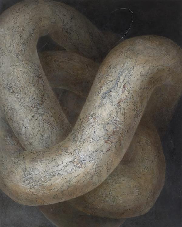 対象物の示す不思議な威力は、その折々の見る物の心によって発揮する。日々変化する画面はまるでその時の自画像のよう。自身の特別な花となった“スィートピー”心に生育する様を素朴なまま表現し続けたい。卒業制作は私にとって真新しい素材と技法の冒険であった。