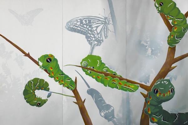 初夏、林の中に足を踏み入れると、緑、緑、緑で体が染められていく。緑は量と濃さを増して林全体をおおいつくす。その中でひときわ葉を繁らせて、ホウの木はたっている。その木の下に立ち、上を見上げると、光と緑が束になって降り注ぎ、まさしくグリーンシャワー!!