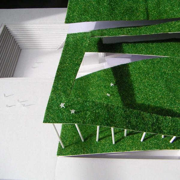 葉っぱが舞い落ちる瞬間、こぼれる光。ざわめく枝の動き、重なり。施された透かしが重なり合いその中で影や赤いシャツ、ピアノの音がモアレの中から微かに漏れだす小学校。渋谷川と東急東横線の高架下、5枚の重なり合うスリット。渋谷のノイズやネオンがゆらぐ水の駅。雲が丘の上に集まり、やがて長老たちが住まう空間になる。長老の家。