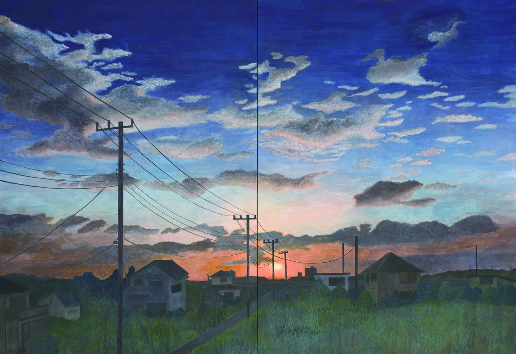 目先のものを求める犬、遠くを見つめる犬、砂漠を描きました。これは、目先の利益だけを追求し続け、気づいたときには何もないという絵です。地球温暖化対策への取り組みを積極的に実行していない自分や社会への警鐘となるよう思いを込めました。