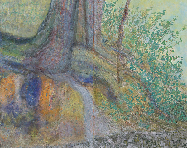 加古川の河口である高砂市の県立高砂海浜公園白砂青松の風景を卒業制作に選びました。謡曲高砂の松で名高い名所です。対岸には港と神戸製鋼所の鎔鉱炉がある工業地帯です。赤白の煙突が林立しています。潮風の匂いが感じ取れる様な風景を描いて完成させたいと思って取り組みました。天候によって河水の色が変化するので苦心しました。