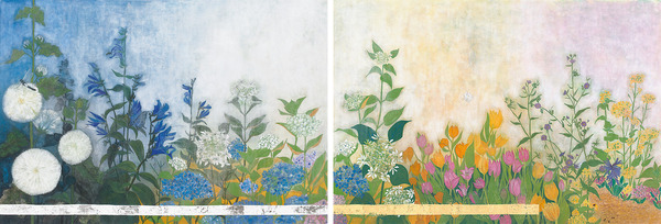 「新潟県中越地震」の際、多くの家畜やペットも命を落としました。その供養のために「般若心経」を写経し、強く生きる事の象徴として戦う牛「闘牛」を描きました。描いているうちに戦うことは悲しみであり苦しみであることに気が付きました。「般若心経」の「空」は感ずるに悲しみや苦しみ欲望などから自由になることを説いていたからです。