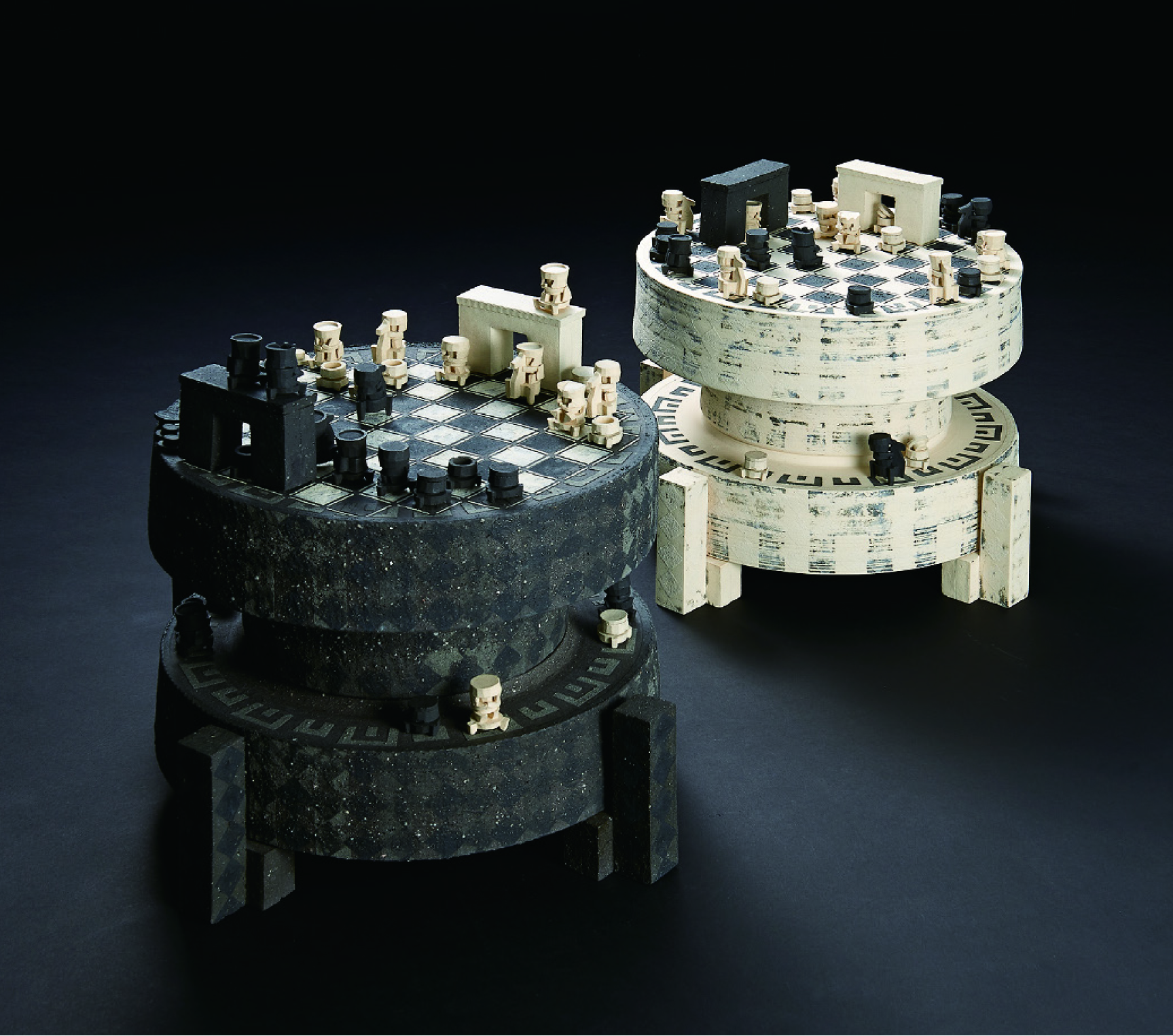 課題で出合った「白化粧」が、すっかり気に入り、卒業制作には中国宋代を起源とするこの伝統技法を使おうと決めました。白一色では寂しいので、化粧土に顔料を混ぜて色化粧としました。なかなか求める色が出ず、顔料の混入比率を色々変えて、幾度も試し焼きをしました。