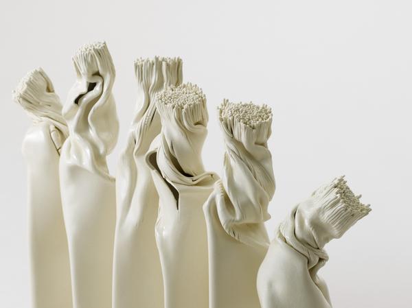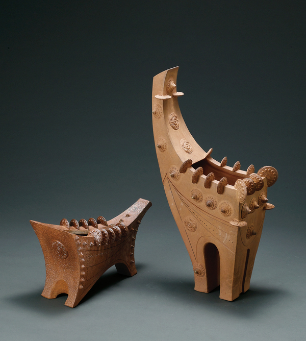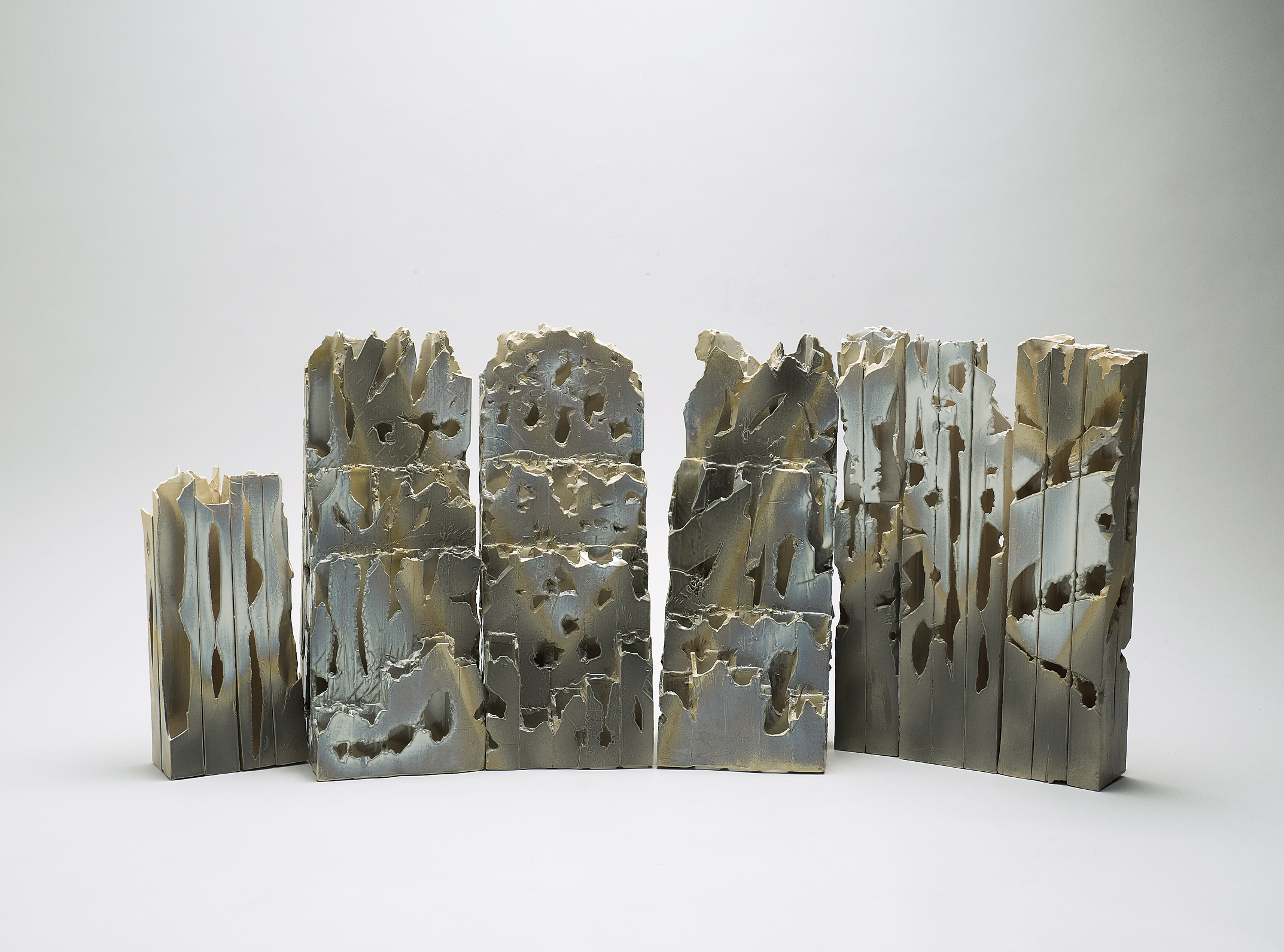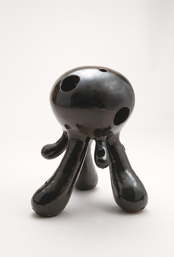 「土と話し合いながら彫る」を基本として、黒釉と白釉を使い、夜のやすらぎと朝の旅立ちを表現してみました。