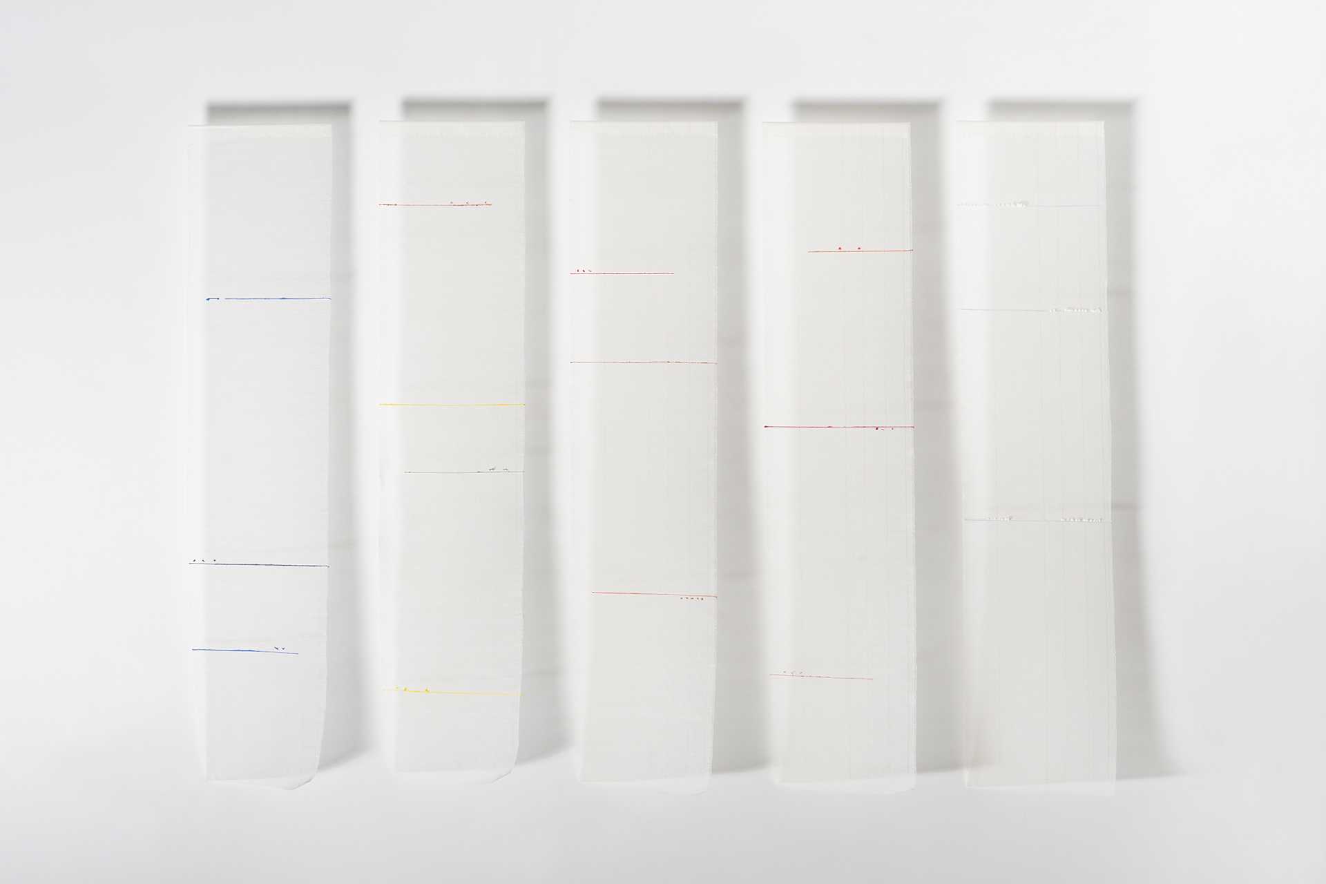 藤の花を経絣で織り上げました。五月に咲く藤の花をどのように表現したらよいのか、1年という長い時間をかけて制作してきましたが、これからも表現可能なモチーフだと考えます。