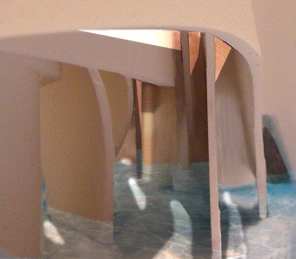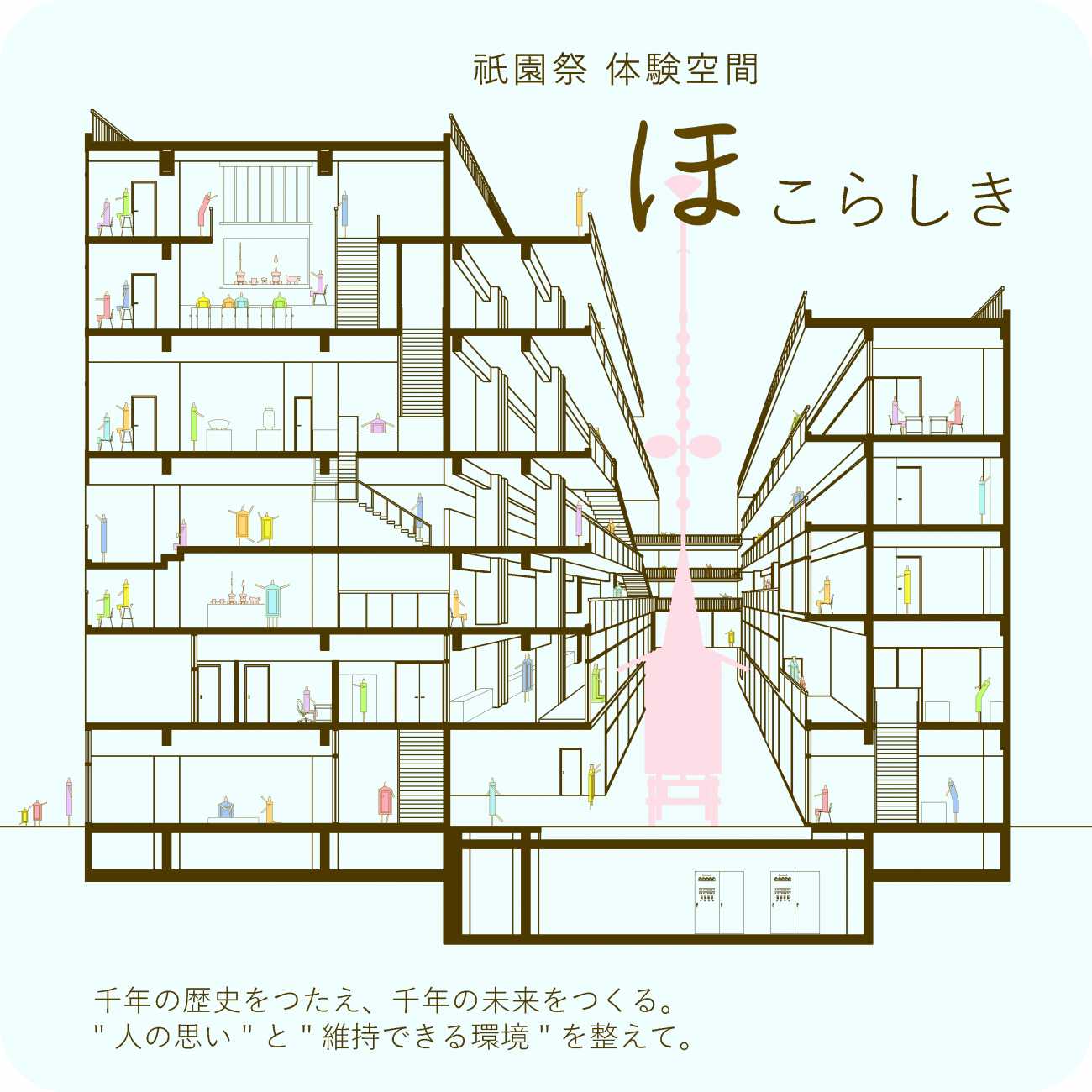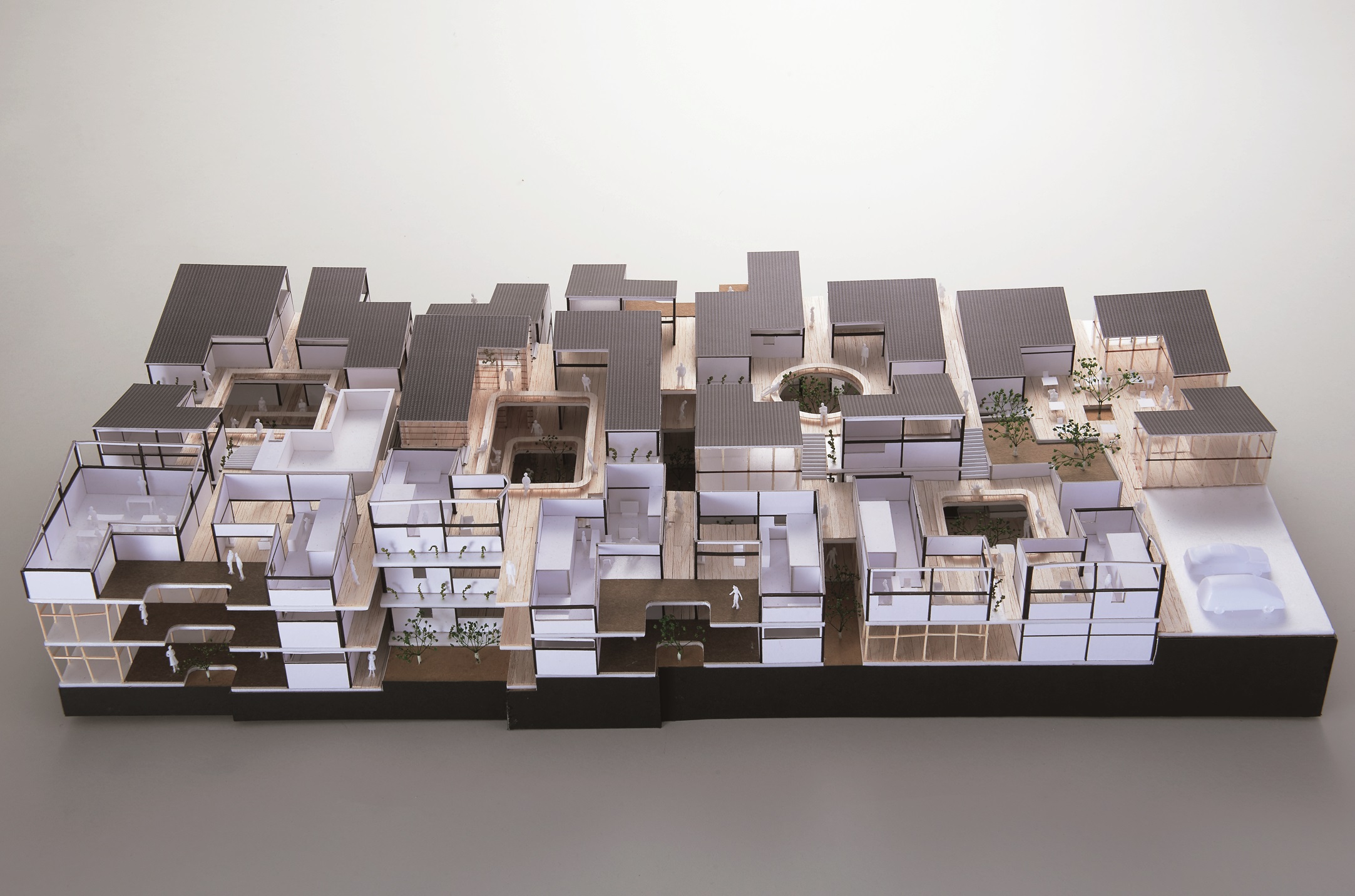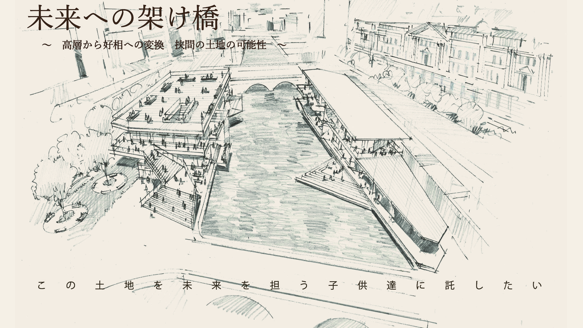 ショーウィンドウやオープンカフェなど賑わいが滲み出る建築は、界隈の雰囲気をつくり出し、街を歩くことを楽しくさせる。魅力的な街は、建築と都市が曖昧な境界で結ばれ、人の行為の可能性を束縛しない。卒業制作では、建築と都市の境界を穏やかにつなぎ相互浸透させ、さらには建築内部まで都市を引き込むことで、街の賑わいを創り出そうと考えた。