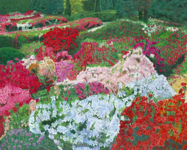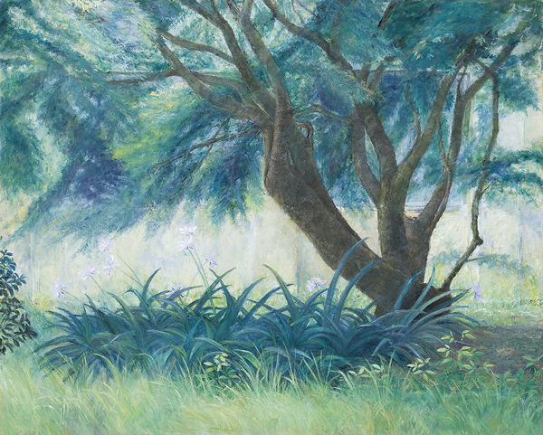 男と女との間に揺れ動く心模様は多種多様で、枚挙にいとまがないほどで日常的なものであろう。ここでは、女性へ思いを寄せる男性心象を扱った。表現は、「舞妓」など比喩的な図像を用い、しかも特殊な組み合わせによって、単なる日常的な出来事を超ファンタスティックな空間として主題に迫った。