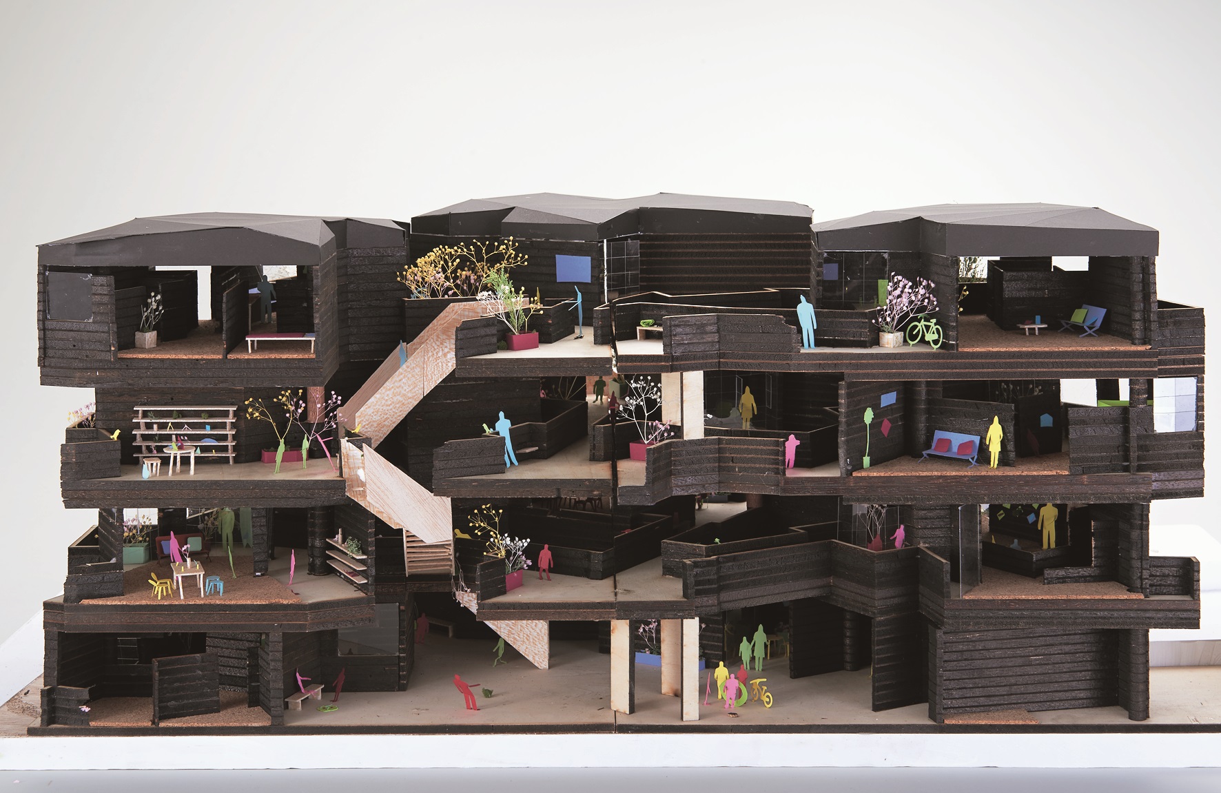 卒業制作として「丘の小学校」「街の屋根」「道の文学館」をつくりました。写真の建物(道の文学館)は、周辺道路や露地との関係性を基に、街から山へ続く道筋を建築が担う。また豊かな自然と建築との共存の為に主要空間は地下に配置した。道の文学館では、露地とのつながり、地上の自然とのつながりが感じられるだろう。