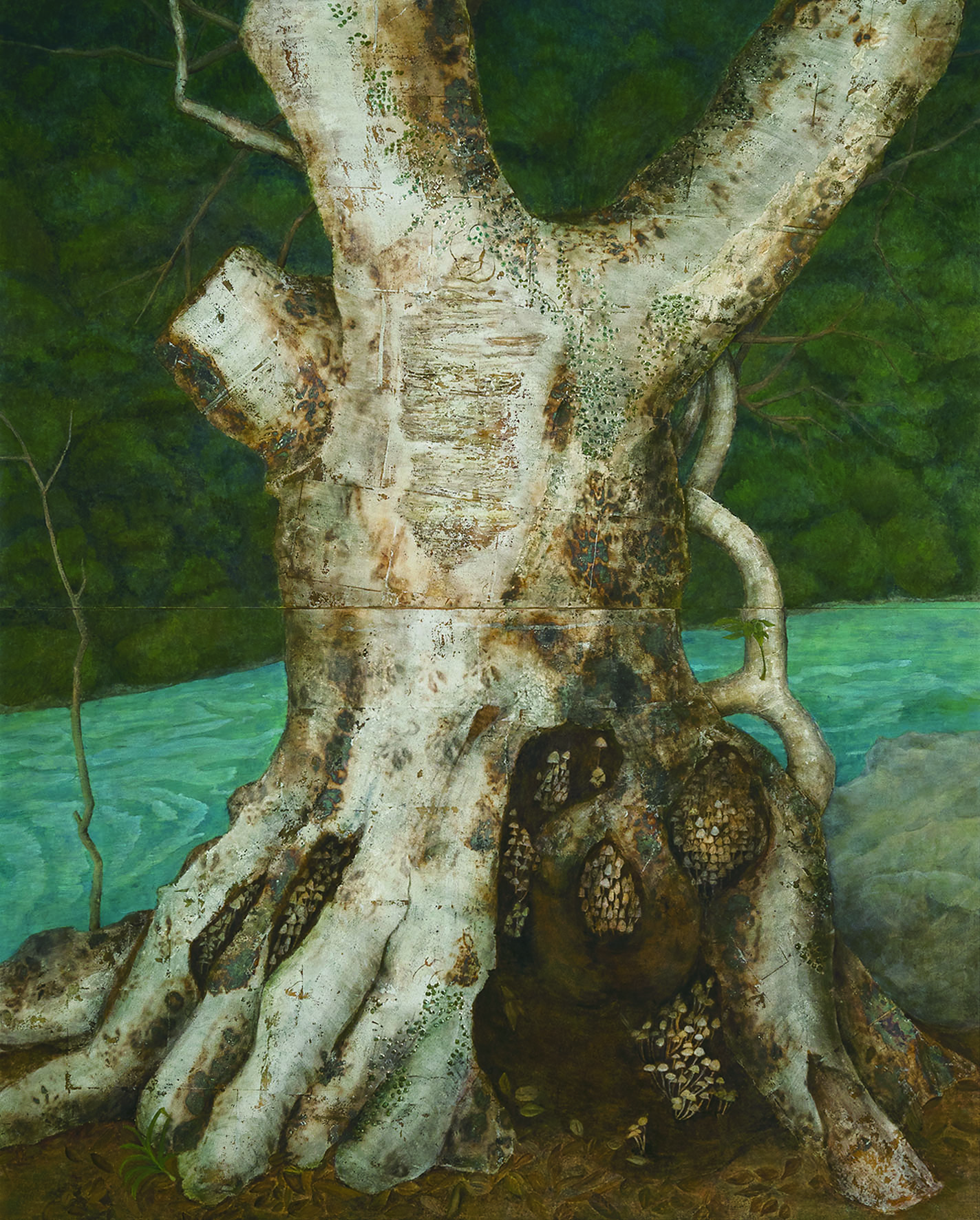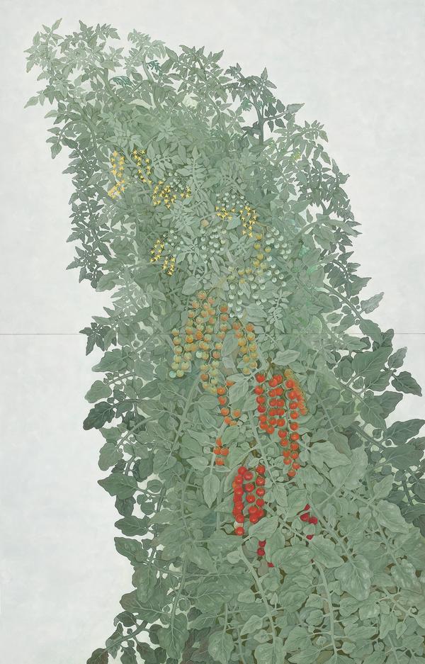里山を歩くのが好きで、よく出かける。春のまだ冷たさの残るある朝、芽ぶいたばかりの木々の中に、うす紫色の藤の花の一群を見つけた。静かであるが確かな存在感のある美しさに、しばし歩みを止め眺めた。