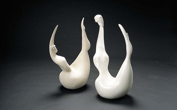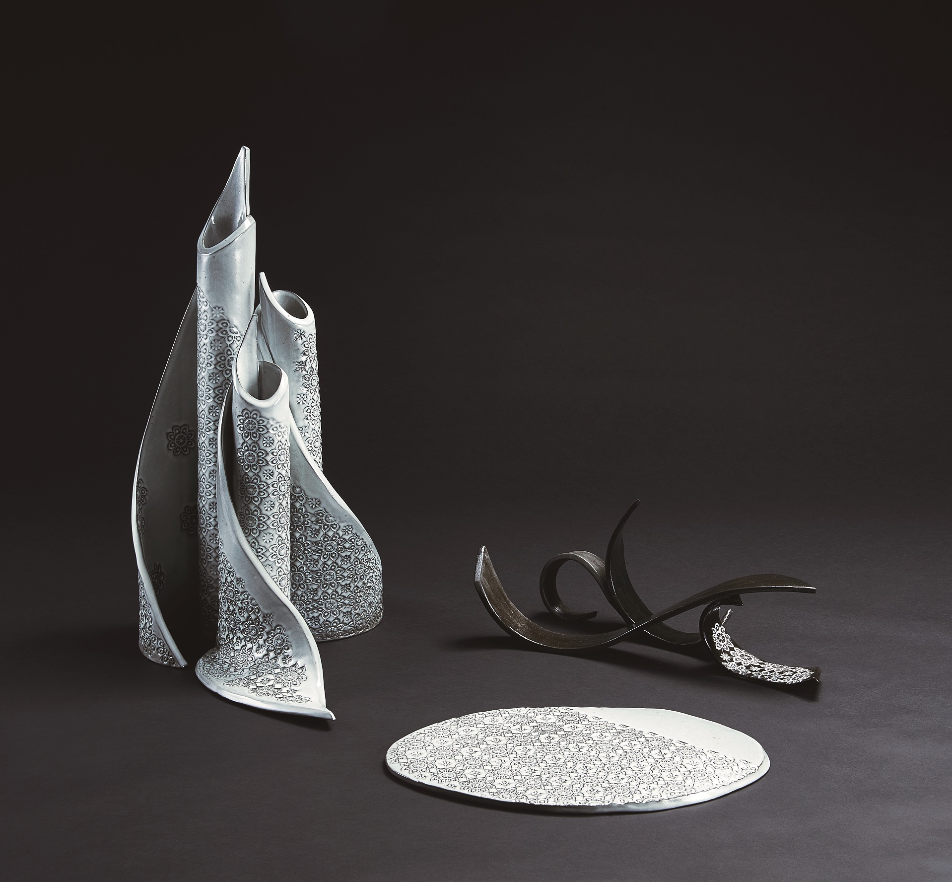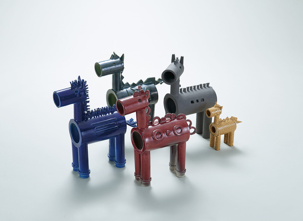 40×40×50cm 白土、黒釉、酸化焼成、ろくろ