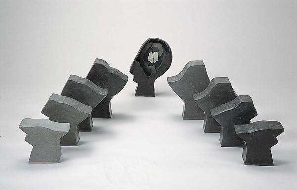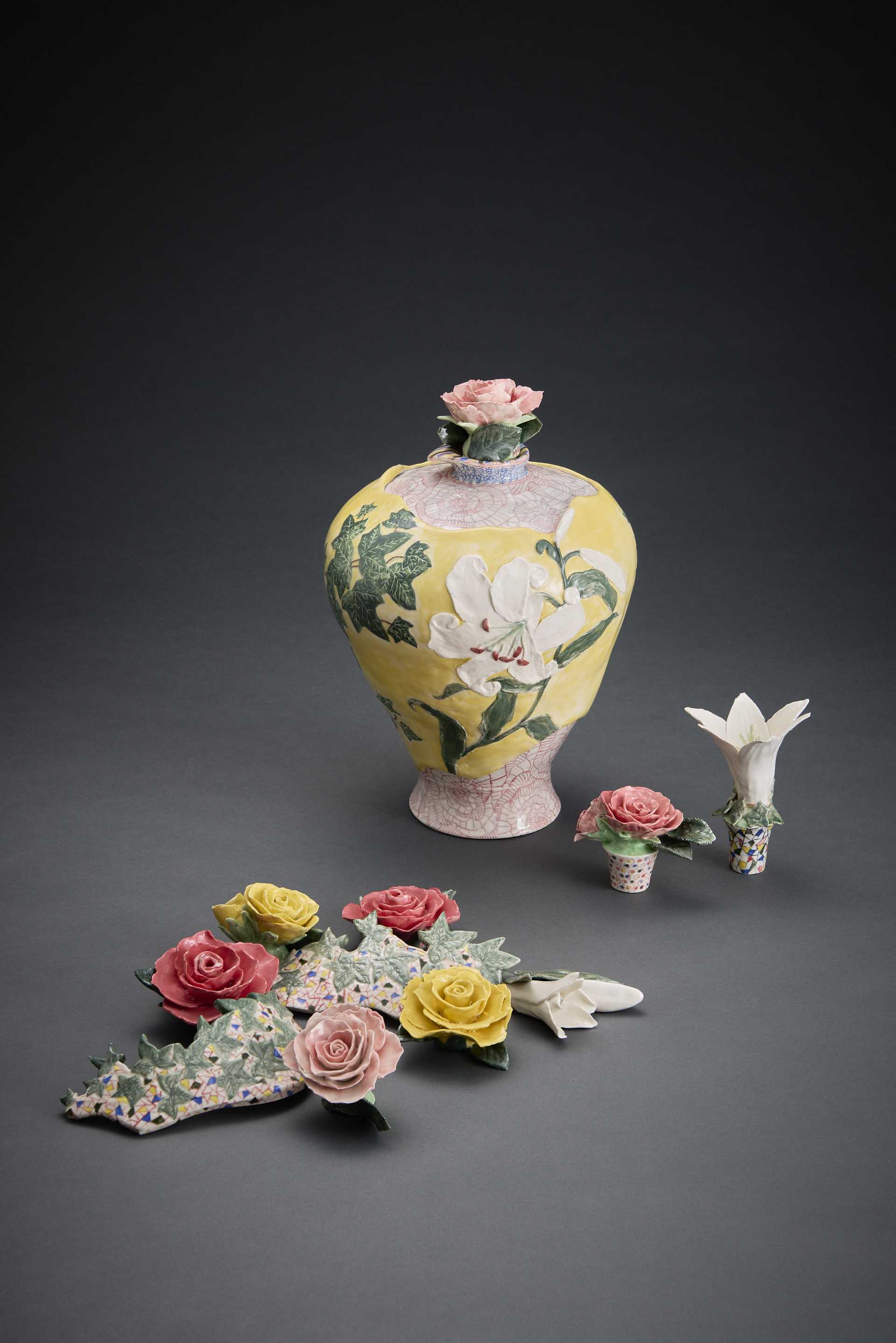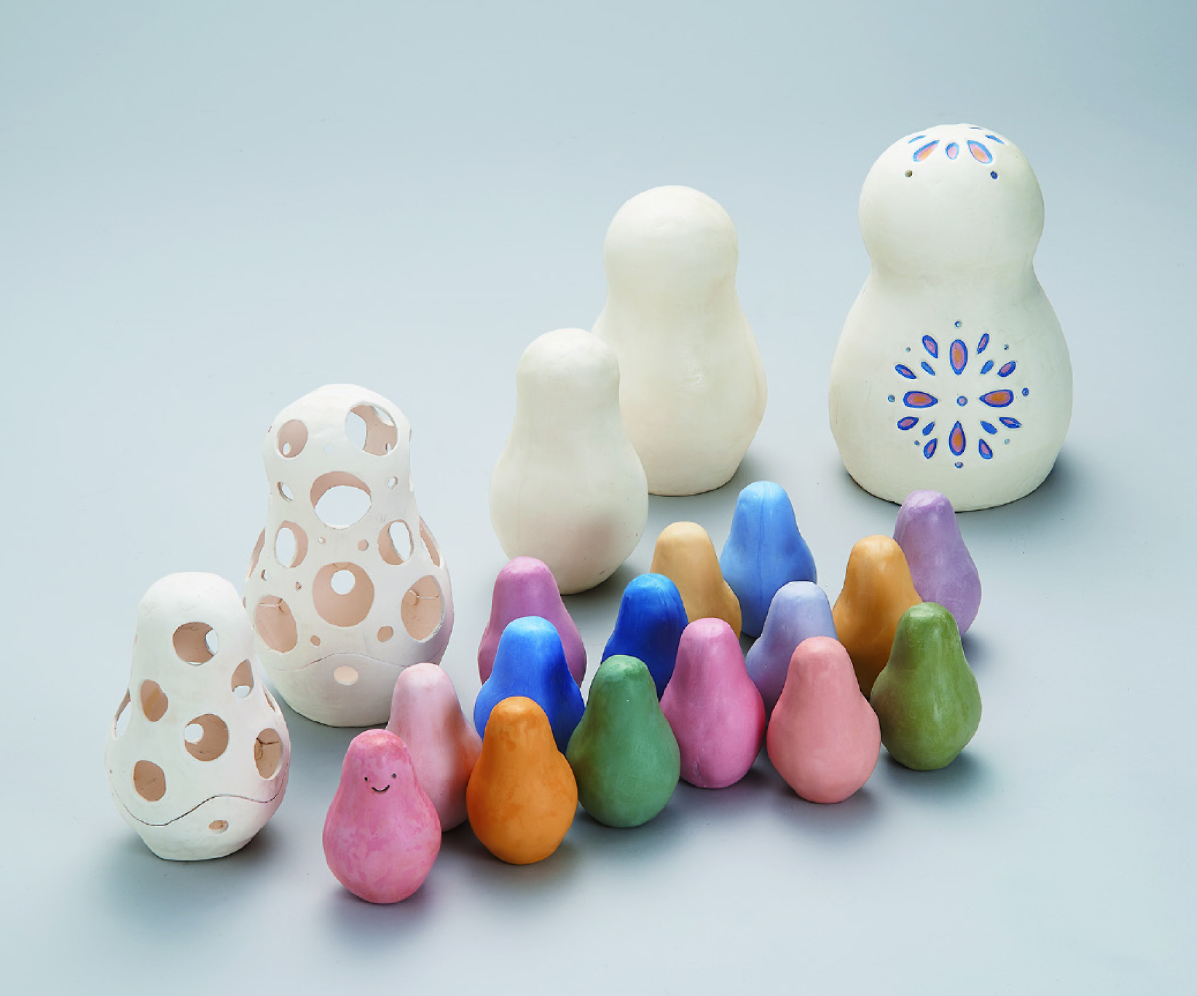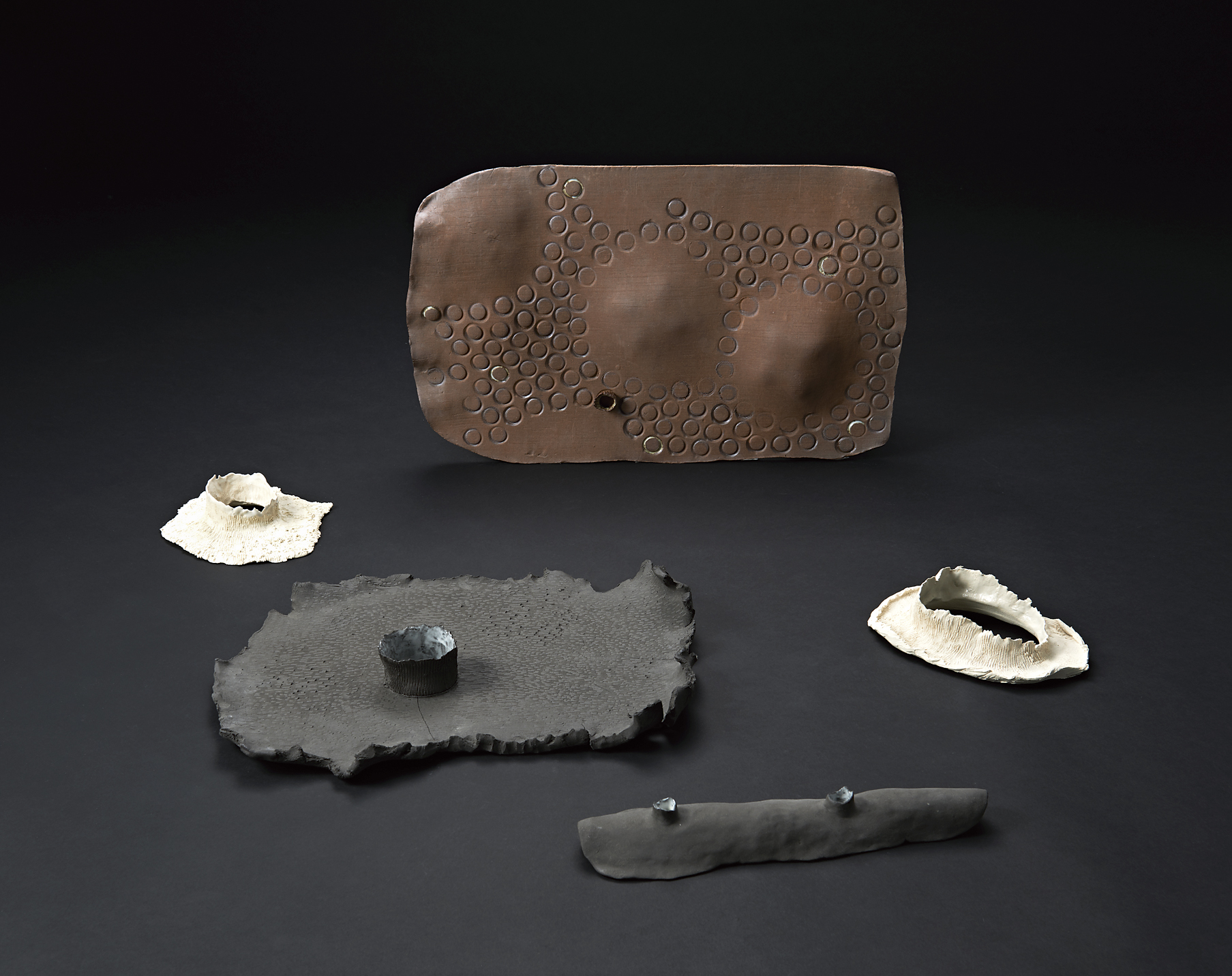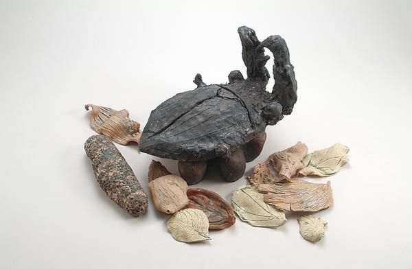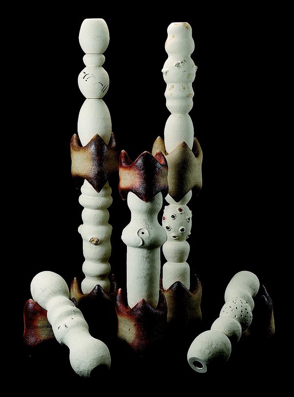 35×35×55cm 白荒土・黒荒土・古陶大、透明釉・大正黒・白化粧・顔料、酸化焼成、手びねり