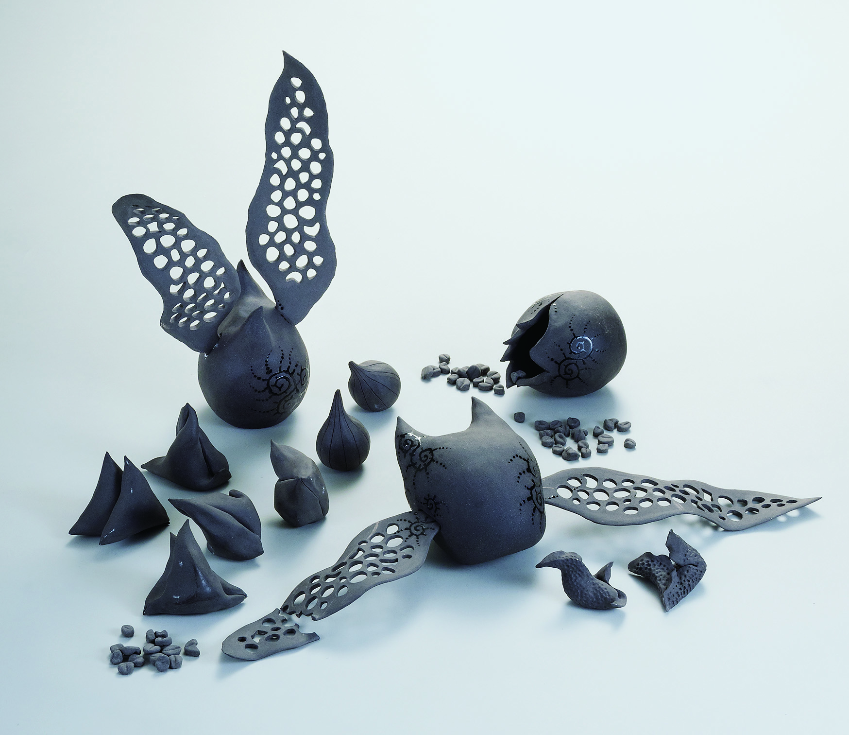 42×27×5cm 白土、黒マット釉、酸化焼成、タタラ