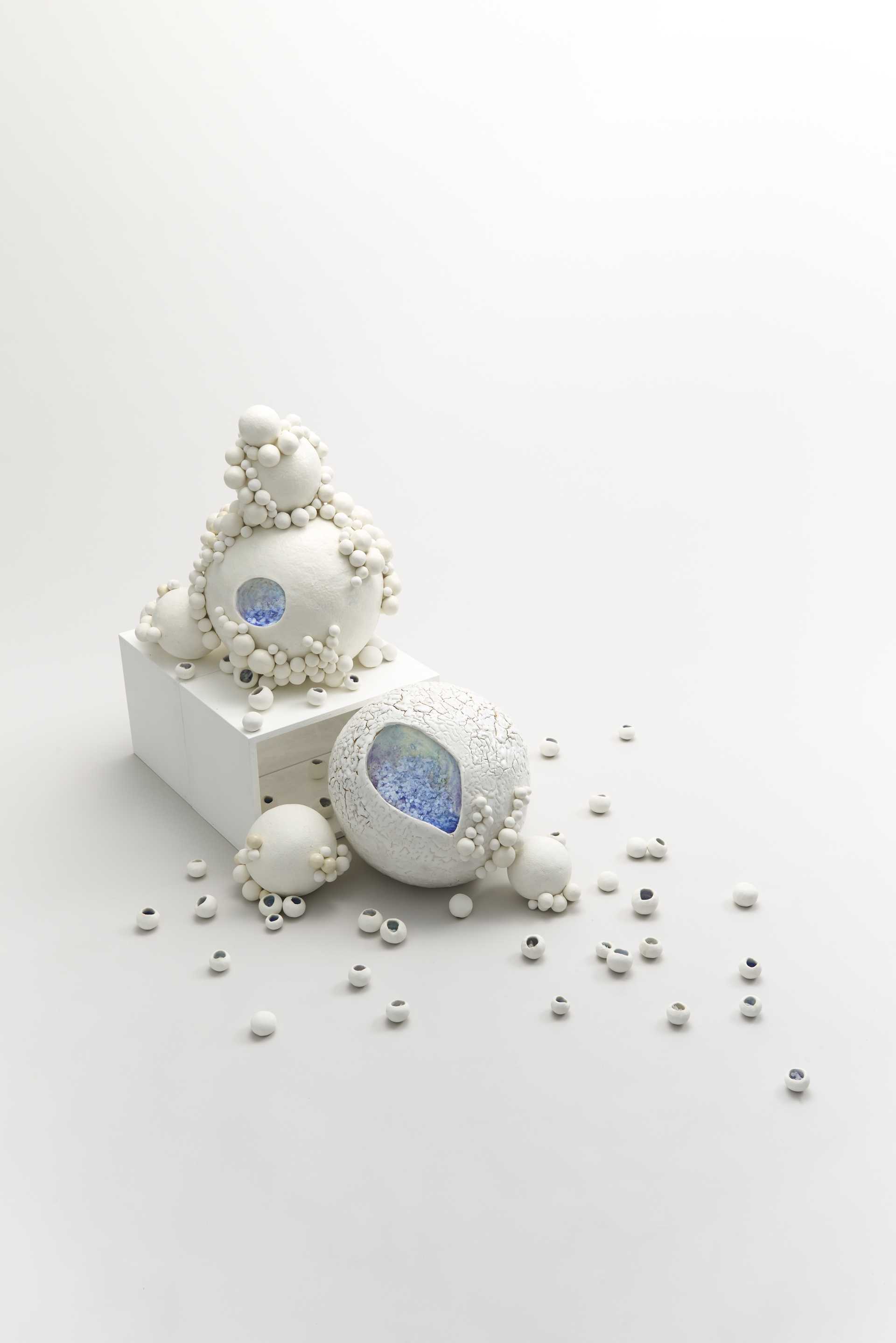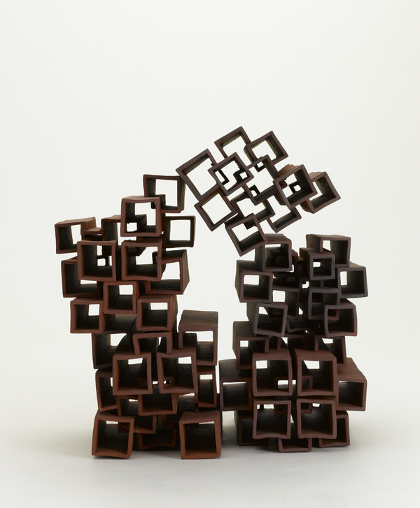 50×52×69cm 信楽土、青銅マット釉・チタンマット釉・土灰釉、酸化焼成、手びねり