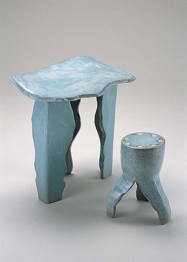 17×42×23cm 白土、トルコ青釉、酸化焼成、手びねり