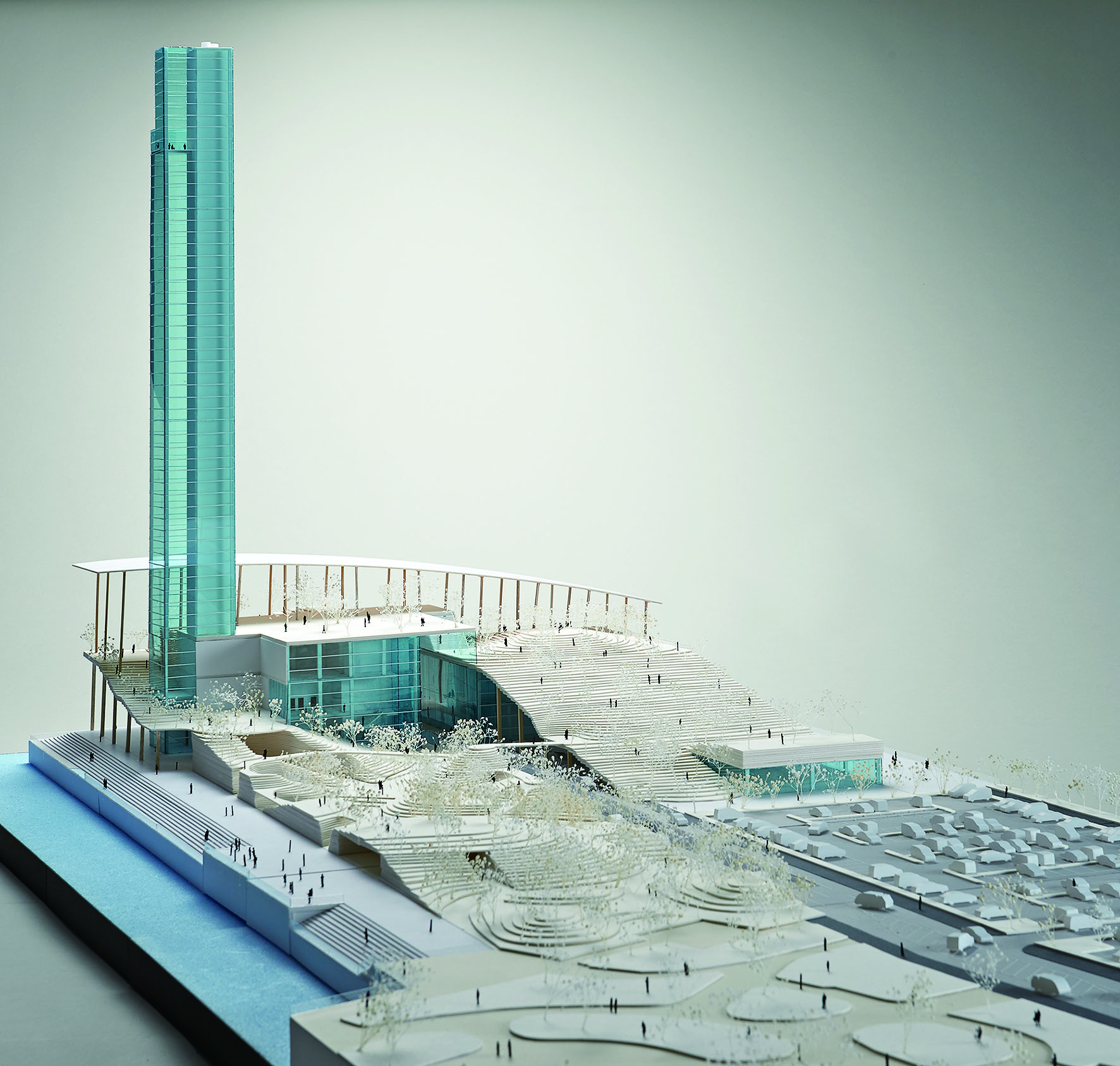 小高い丘に登ってみると、眼下には無数の家の明かり、空には星空が広がっています。そんな銀河の様な空間の中にこの建築はあります。空へと伸びる建築の中を登っていくと、その先は宇宙へと続く見えない線路が続いているのです。この建築は人の想いを乗せて、ゆっくりと大地を離脱しようとする意志そのものです。