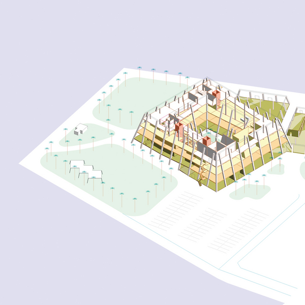 「こどものあそび場」の両側に、父親の建築と母親の建築をおきました。