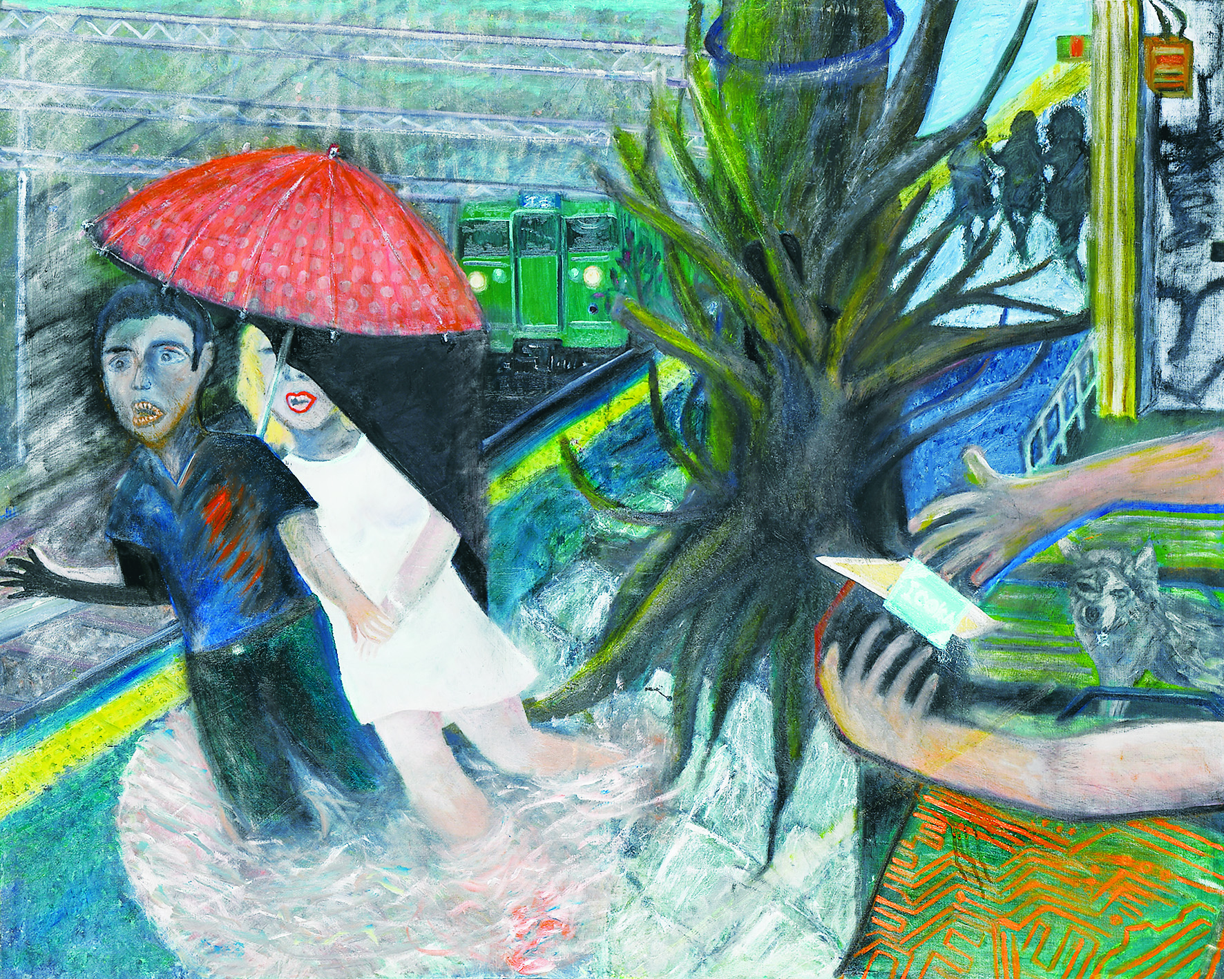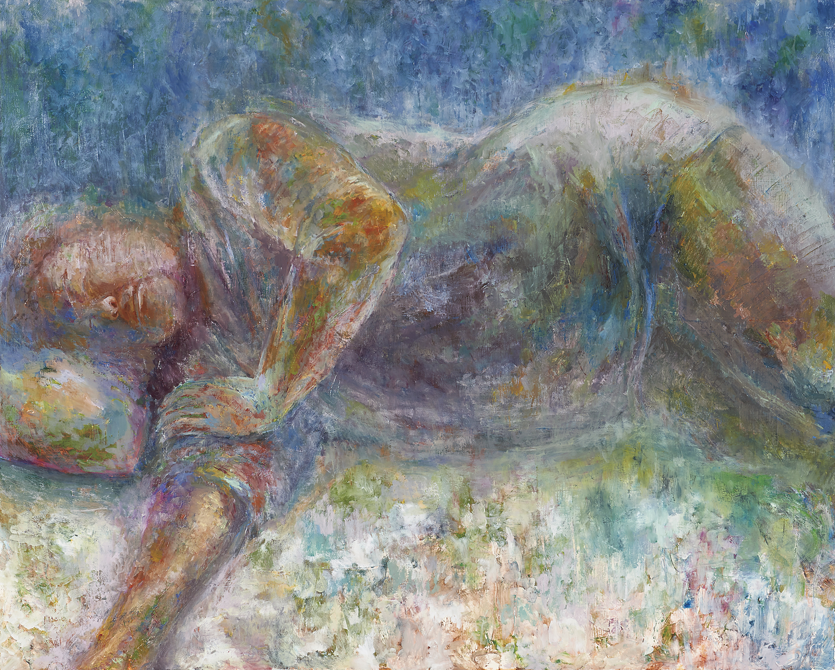 丸いキャンバスは、大地や宇宙という「空間」を表現している。そこでは様々な生命が、それぞれの色彩を放ちながら生きている。そのキラキラしたイメージを、どれだけ表現できるのか。今まで使わなかった色も用いて、色彩の発言力でそれを表すよう努めた。この冒険によって発色の面白さを知り、描くことがより楽しくなった。