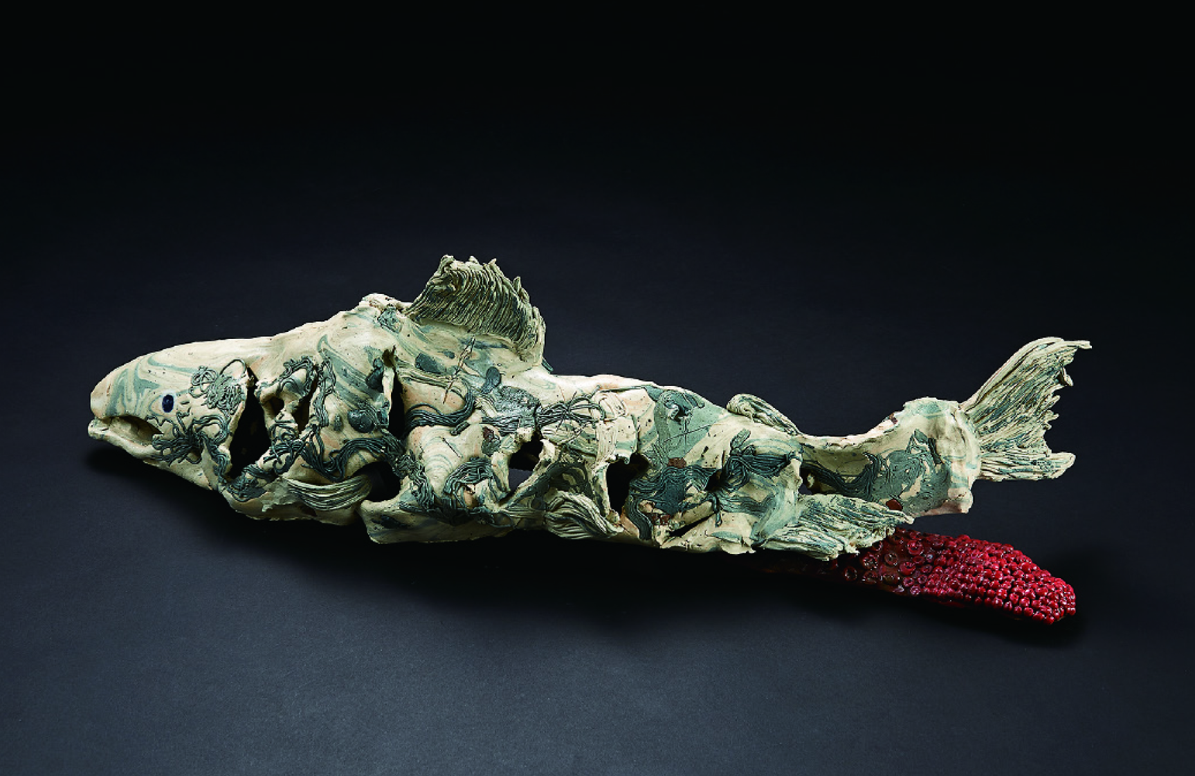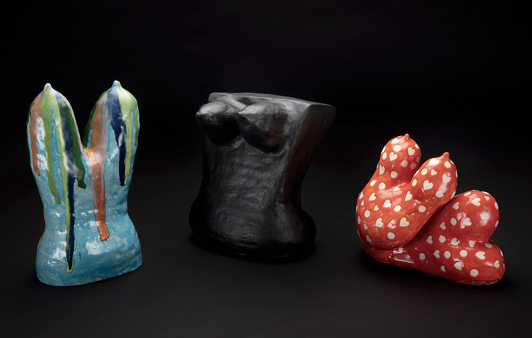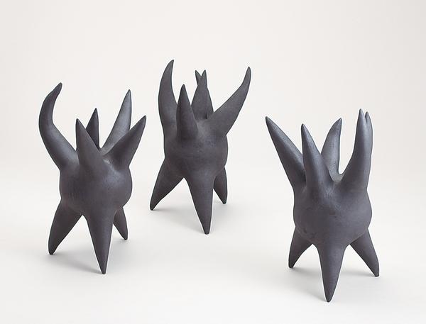 25×25×85cm、他 白土・赤土・黒土、透明釉・溶化化粧土、酸化焼成、手びねり