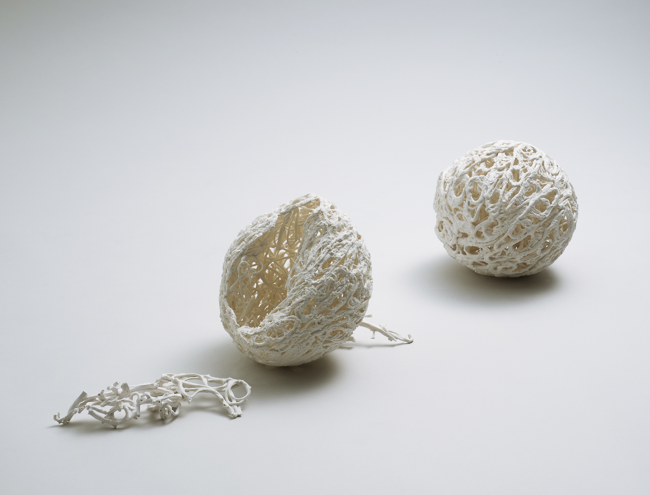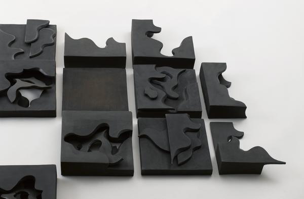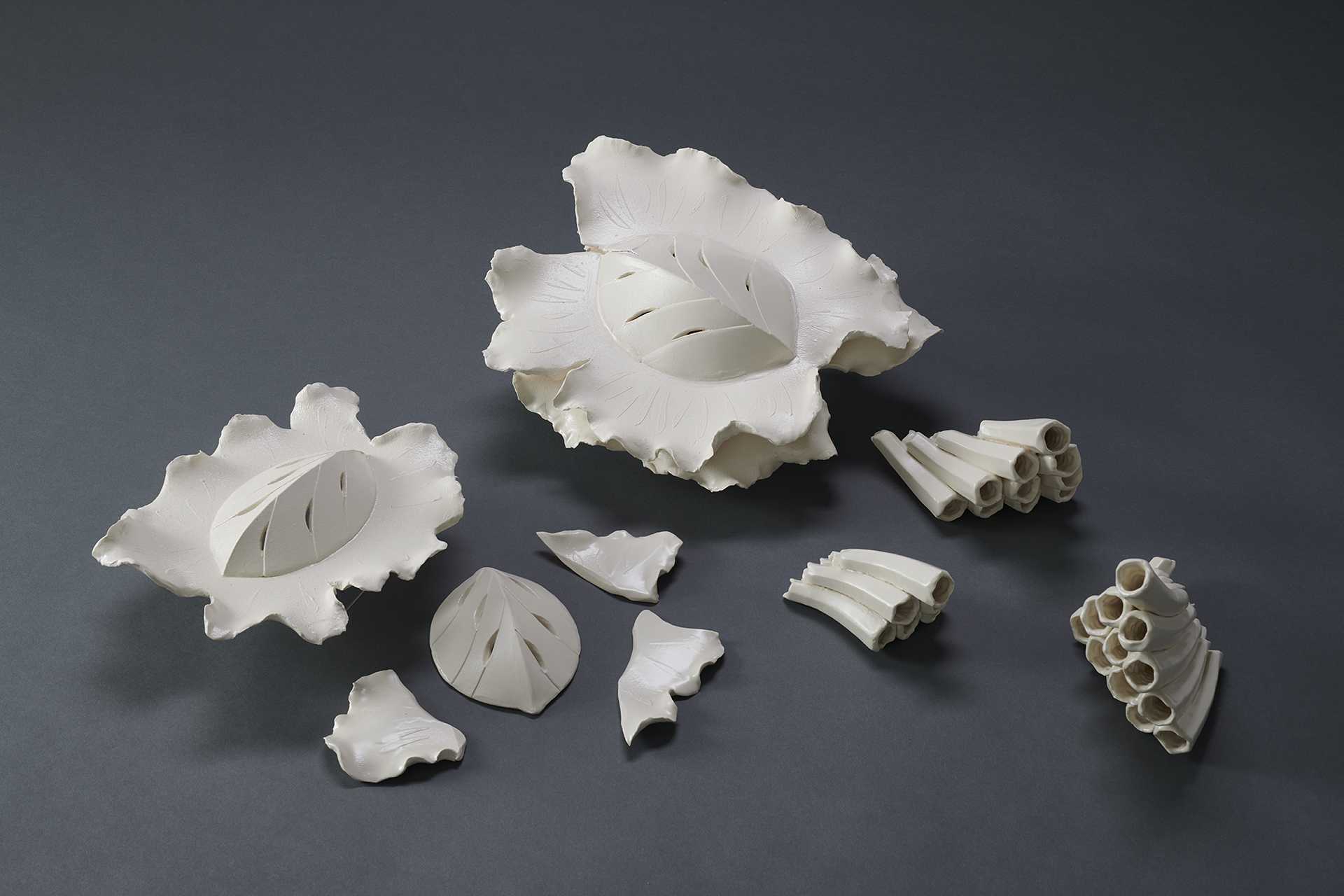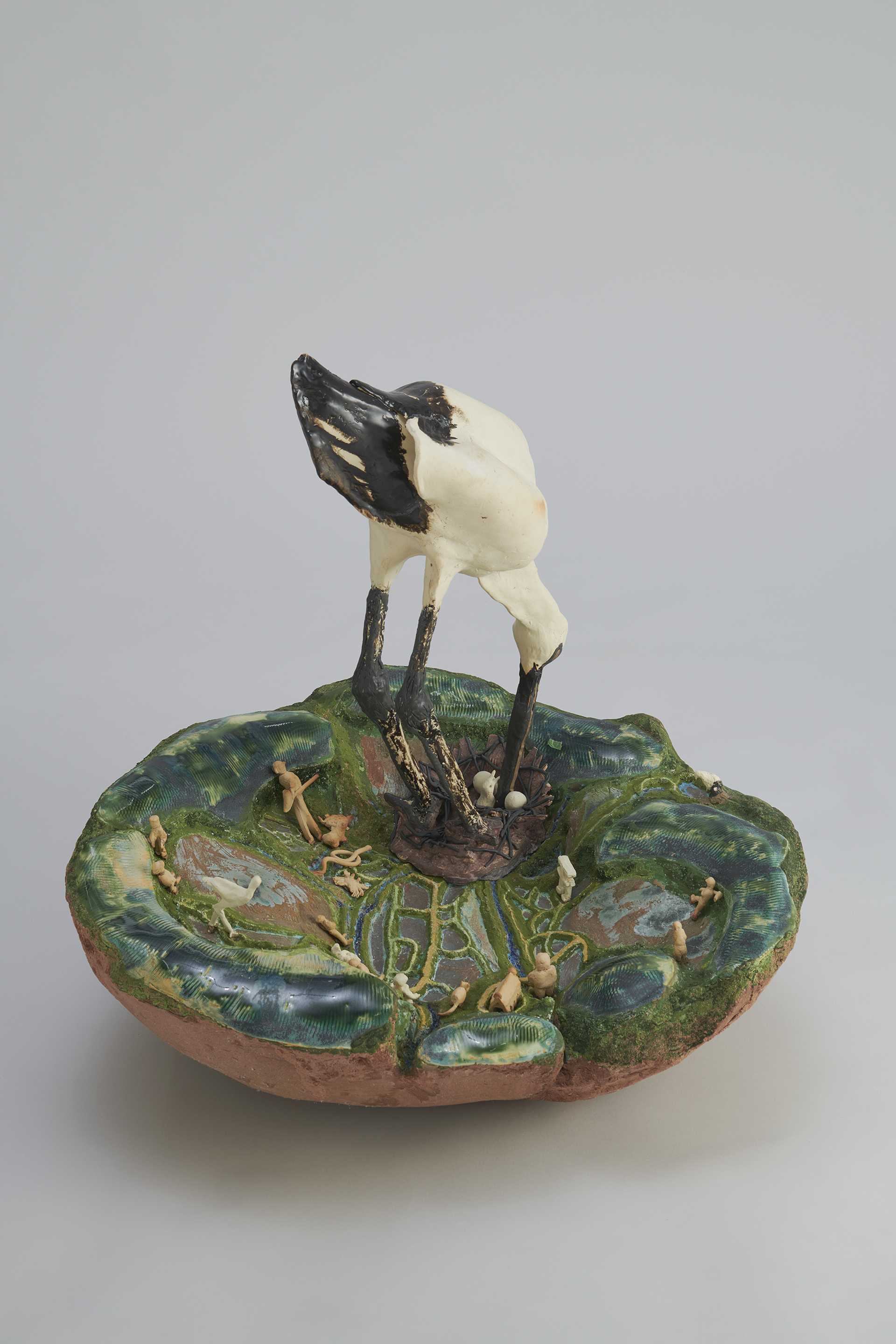 25×25×85cm、他 白土・赤土・黒土、透明釉・溶化化粧土、酸化焼成、手びねり