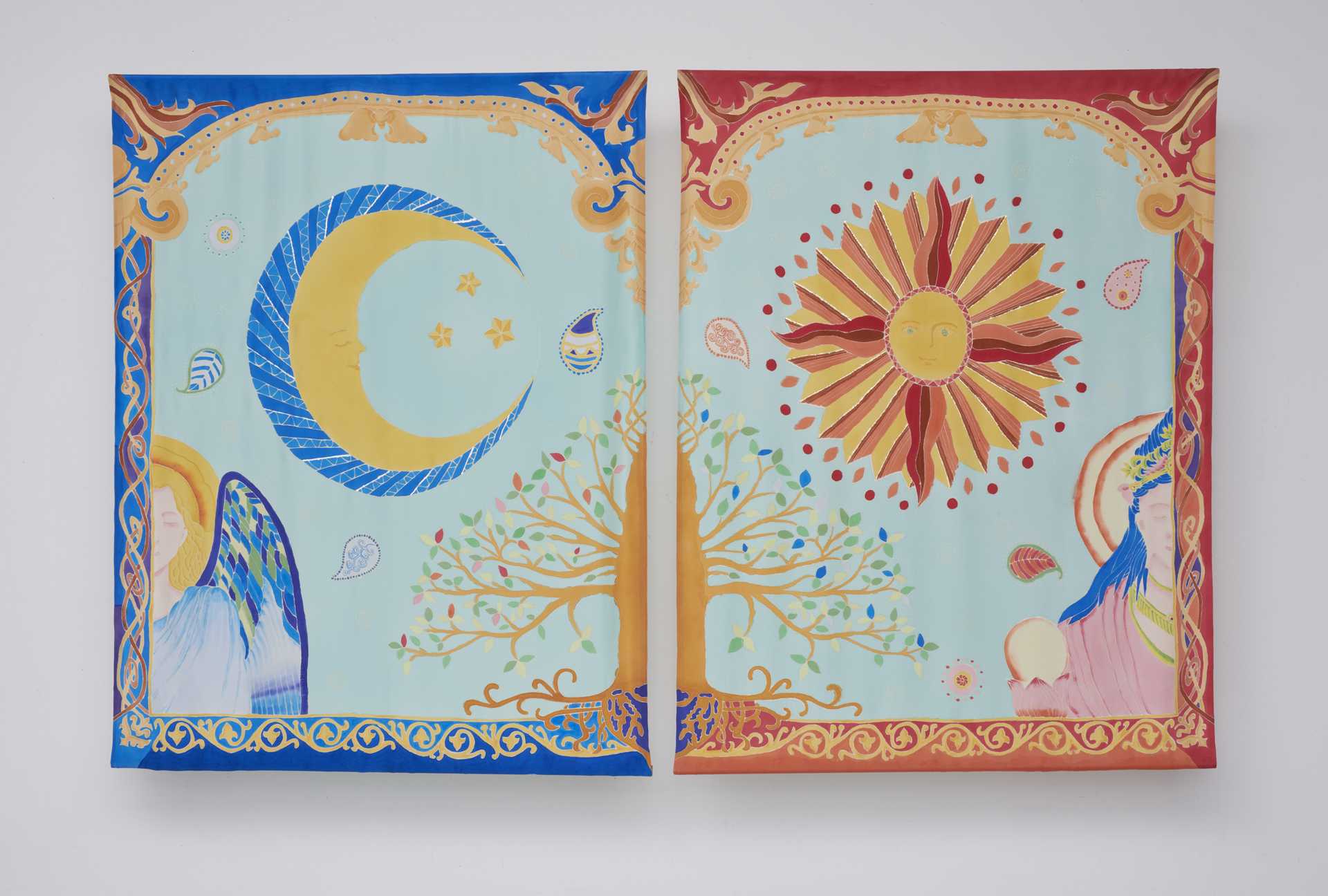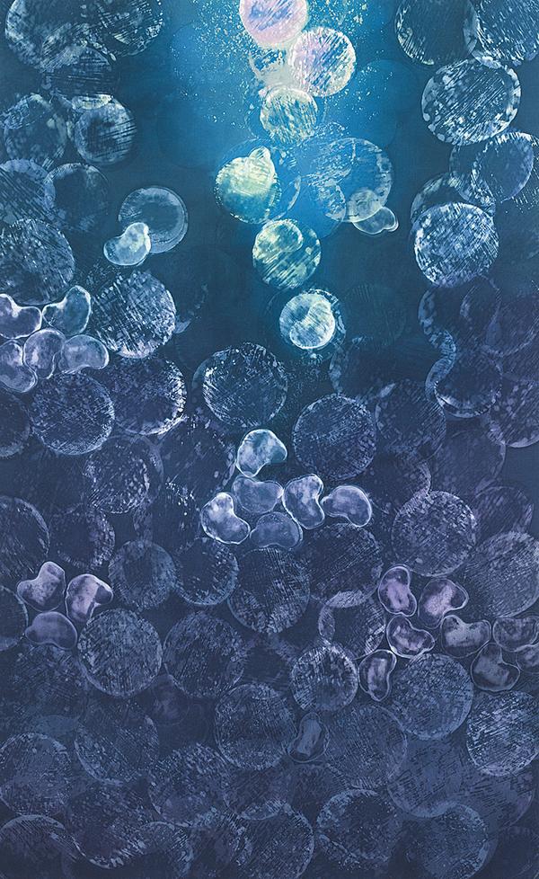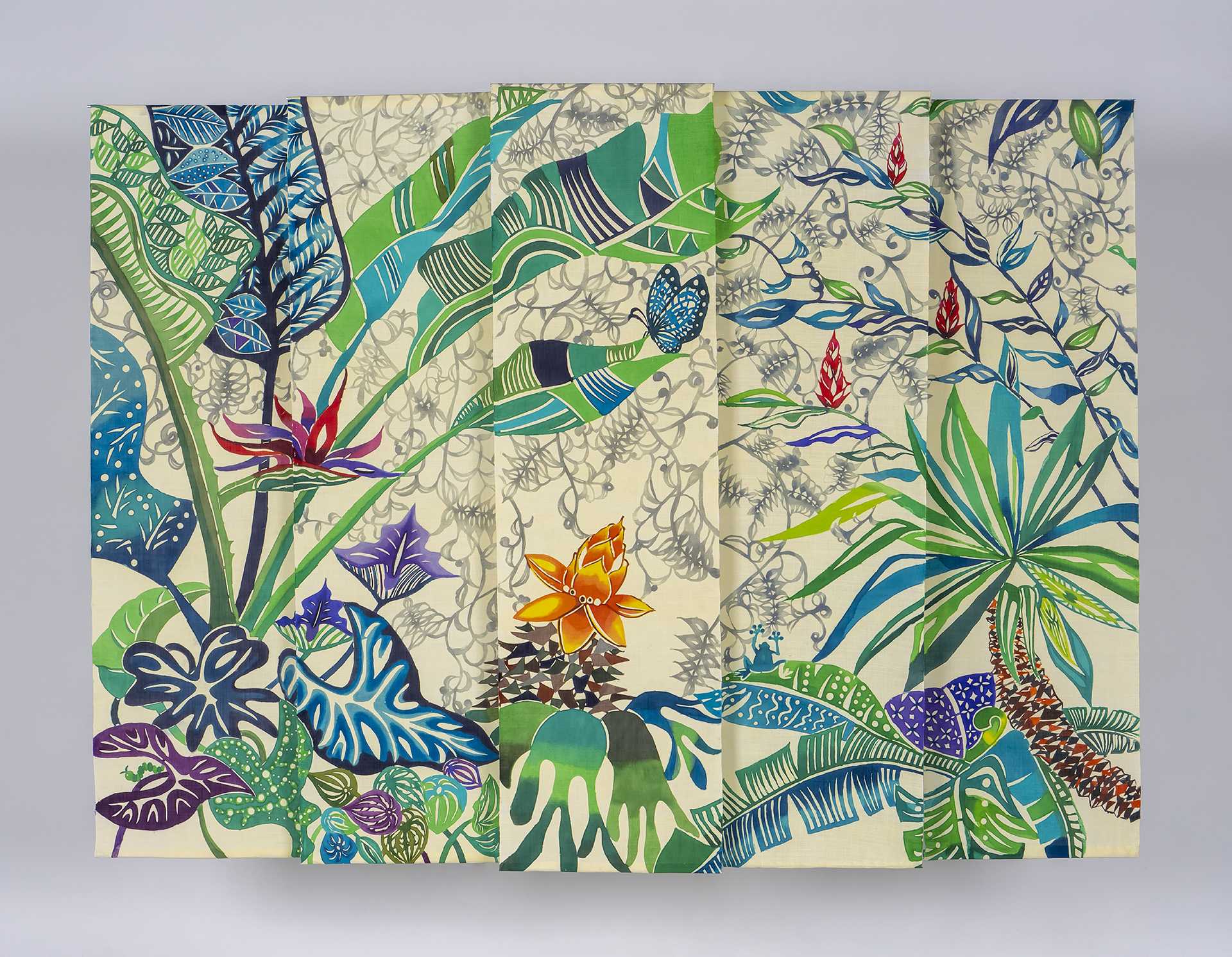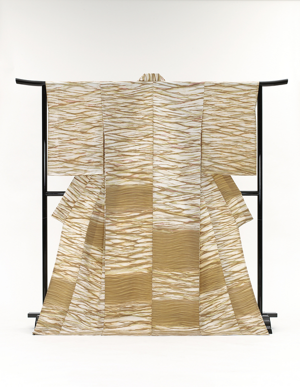 紗合せの方法で2枚の布によって作られる微妙な色や風合いの違いを表現。外はまだ寒いのに、庭の樹木に新芽を見つけた時たとえようのない喜びを感じます。手入れもせずほったらかしていたのに、春を忘れないでいてくれた。もう枯れてしまったかしらと思っていた木に小さな光が芽を出して精一杯萌えているこのような光景が大好きです。