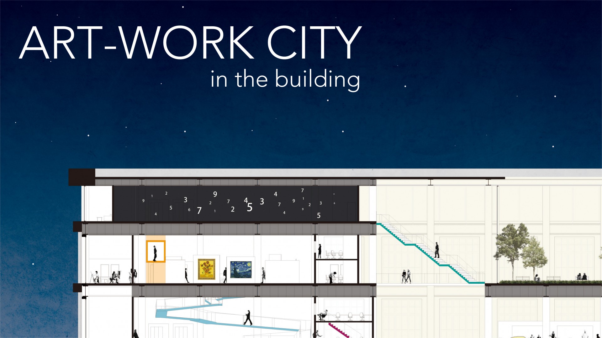 東京都港区北青山の築40年を超える都営住宅群の一画に美術館を設計する。敷地周辺は表参道を中心とした華やかな地域だが、通り沿いの商業エリアと路地裏の住宅エリアとの接点が少ない。両エリアの中間に位置する敷地に公共の機能をもつ「筒状」の美術館を挿入することで新しいアクティビティが発生し、その影響が街の活性化へ広がっていく。