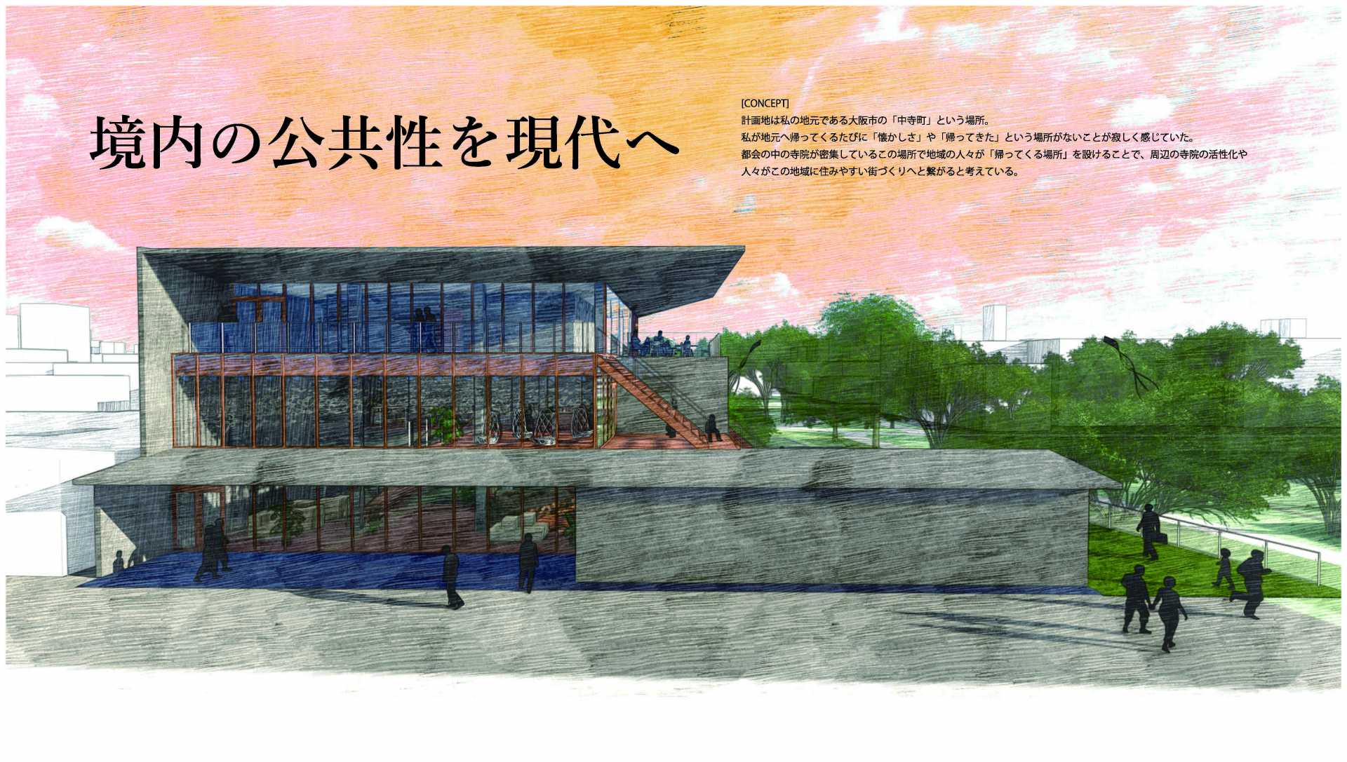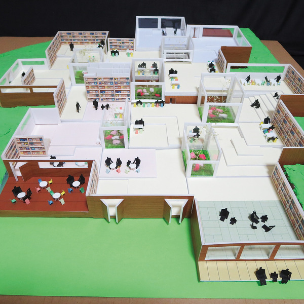 frame―躯体/額縁/家具…フレームの配置によって、ブックカフェ・住戸・緑が繁る空間ができる。本と緑とフレームに囲まれた集住のカタチ。一人でウチに籠るだけではなく、彩る、シェルフを飾る、生活を彩ってみる、周囲と関わり始める。登場人物はモノだけではなく、ワタシ自身も。ここでは沢山の個性で彩られたフレームが楽しめる。