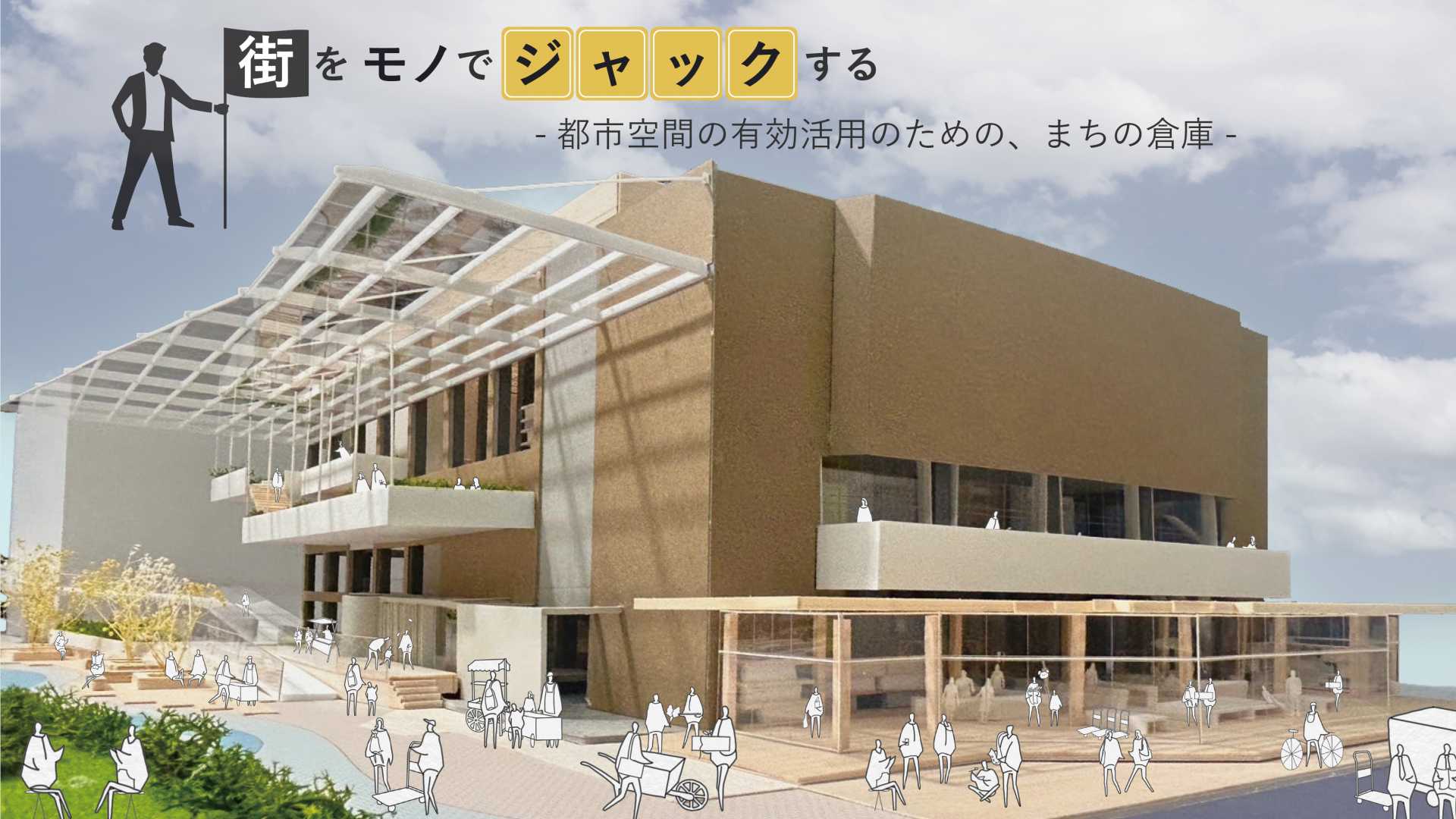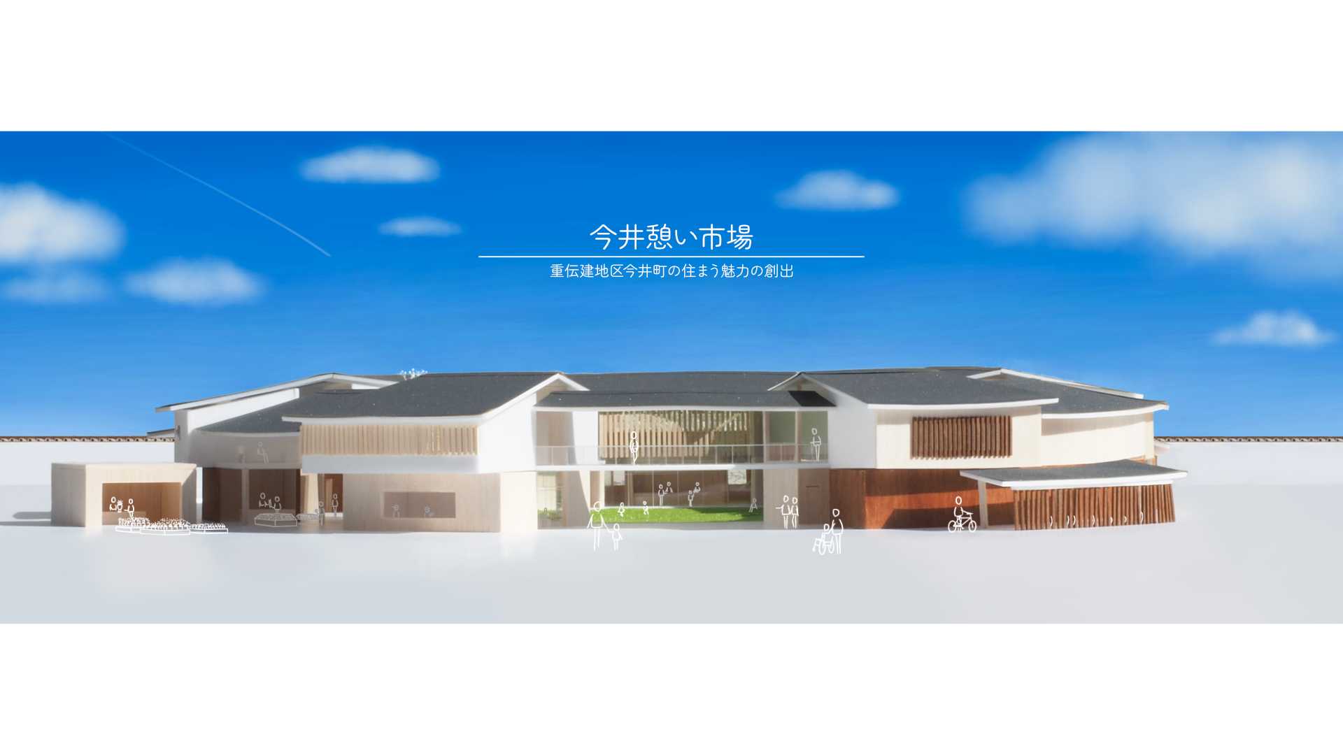 大きなパーゴラで覆われた道の駅。山と川に挟まれた自然の景観を尊重した計画。季節の変化と需要に合わせて拡大縮小可能。フレキシブルで環境に配慮した建築の提案。