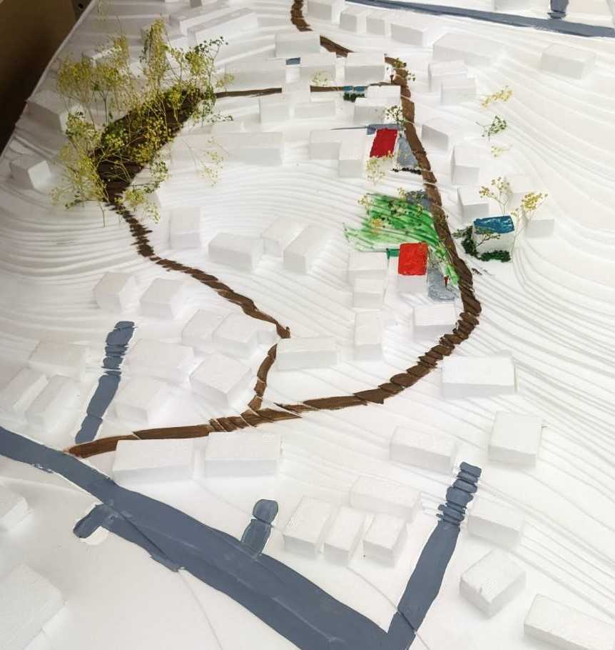 少子化が進む中でも子供たちの安全を守りつづける歩道橋。古錆びた町のランドマークからランドスケープの拠点として新しく生まれ変わる。