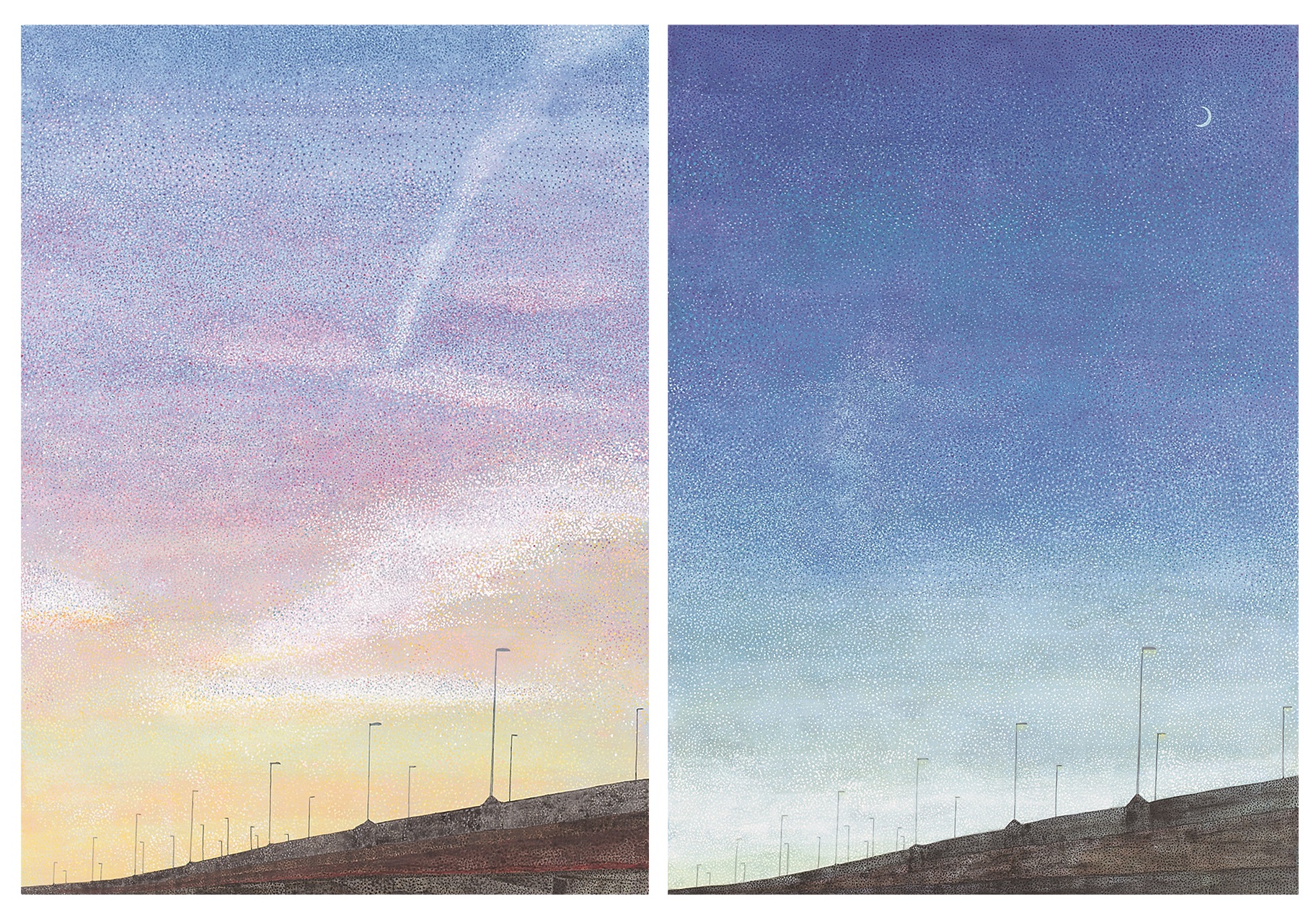 富山県の砺波平野には屋敷林に囲まれた農家が点在しています。屋敷林は厳しい冬の風雪と夏の暑さを防いでいます。屋敷林に囲まれた集落は散居村と言われ、緑豊かな美しい農村風景です。11月に入ると北陸では曇りや雨の日が続きます。春や秋の爽やかな風景ではなく、晩秋の北陸独特の空と屋敷林を描きました。