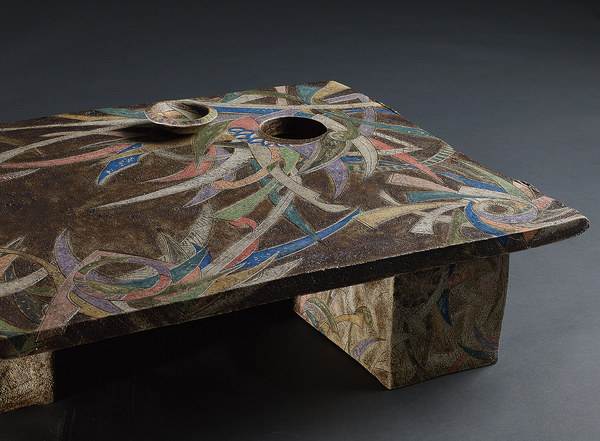 14×37×23cm、他 白土、白マット釉、酸化焼成、タタラ