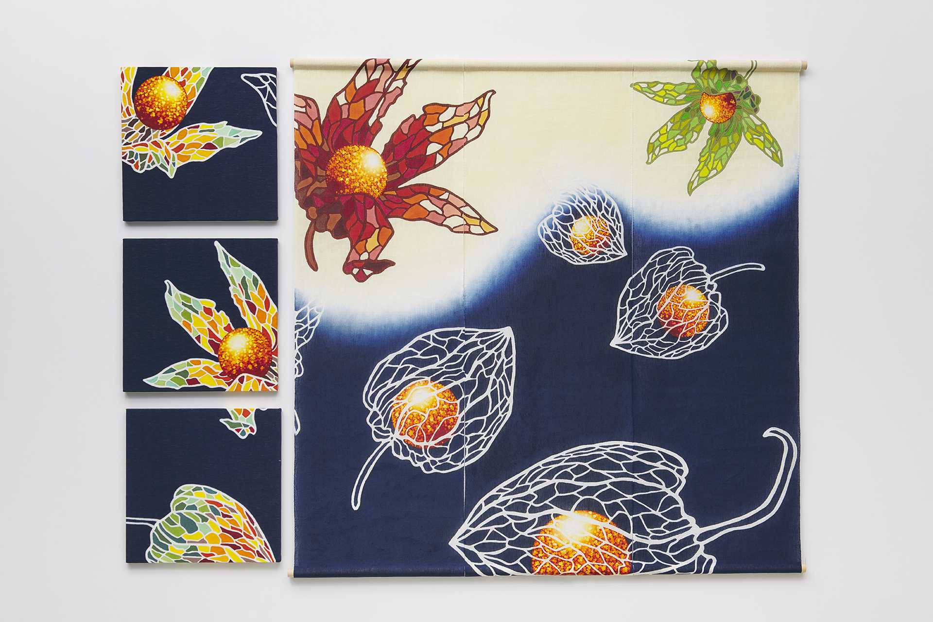 バッハのゴールドベルク変奏曲のアリアの世界を物語のように表現した。旋律の流れを鳥と音符の形で、音の持つ響きを色彩で、この曲の時間と空間を表現したいと思った。