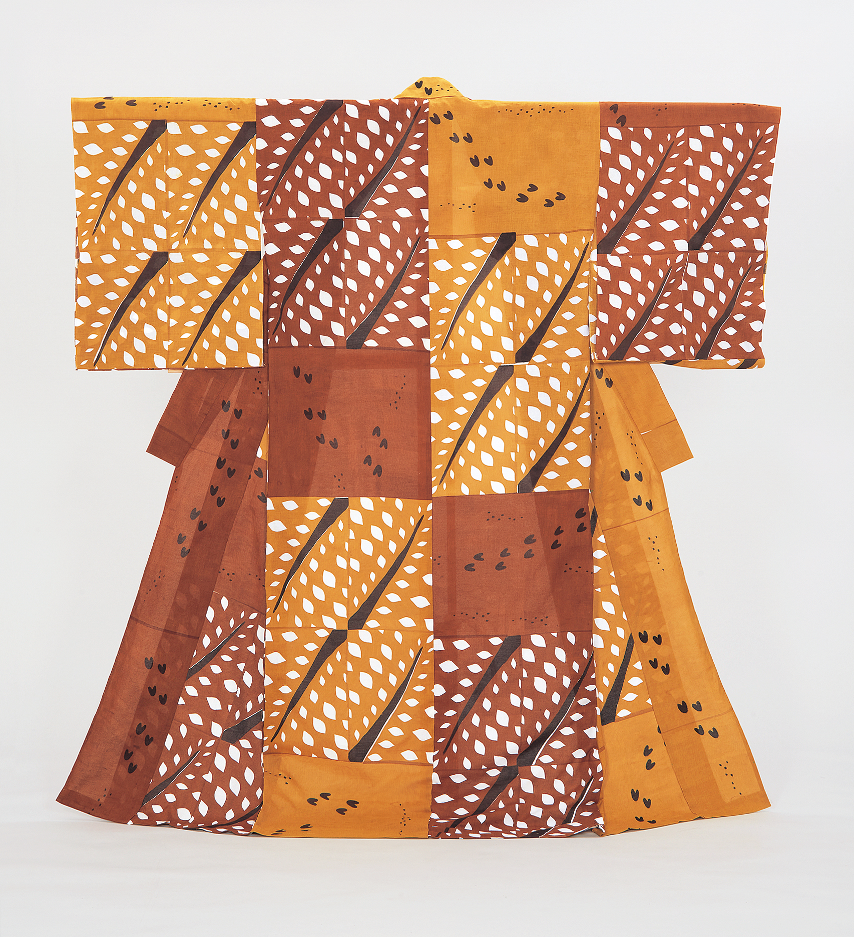 180×140cm 綿/反応染料、型染・スプラッシュ・金彩