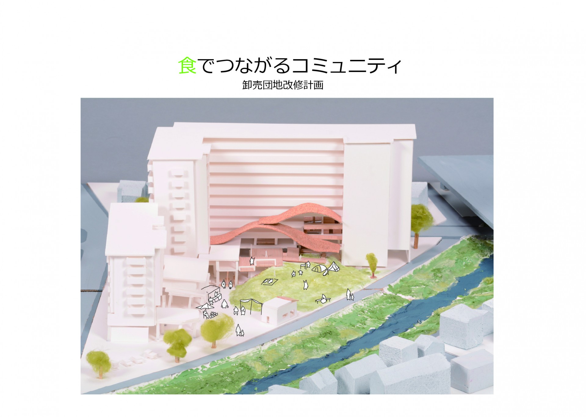 ベッドタウンとして機能している浦安市は、都市の成熟期を迎えるにあたって長期的に住むことのできる街としての変容が求められている。また、三方を水に囲まれているが、水を感じる事はほとんど無い。そこで、海辺の敷地に水を感じられるスポーツ・文化合宿施設を計画することで、住人の生活に豊かさを与え、施設利用者との交流も生まれる。