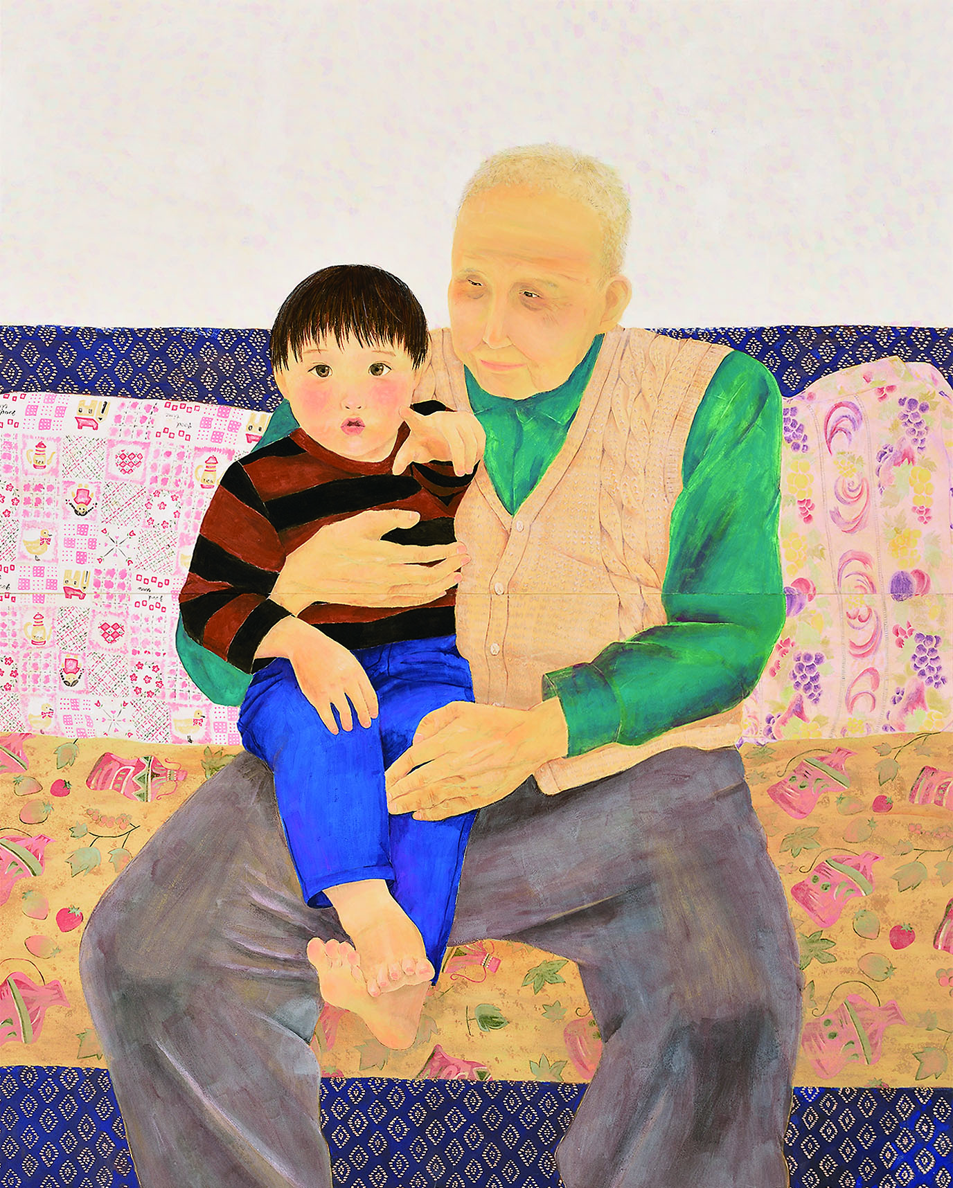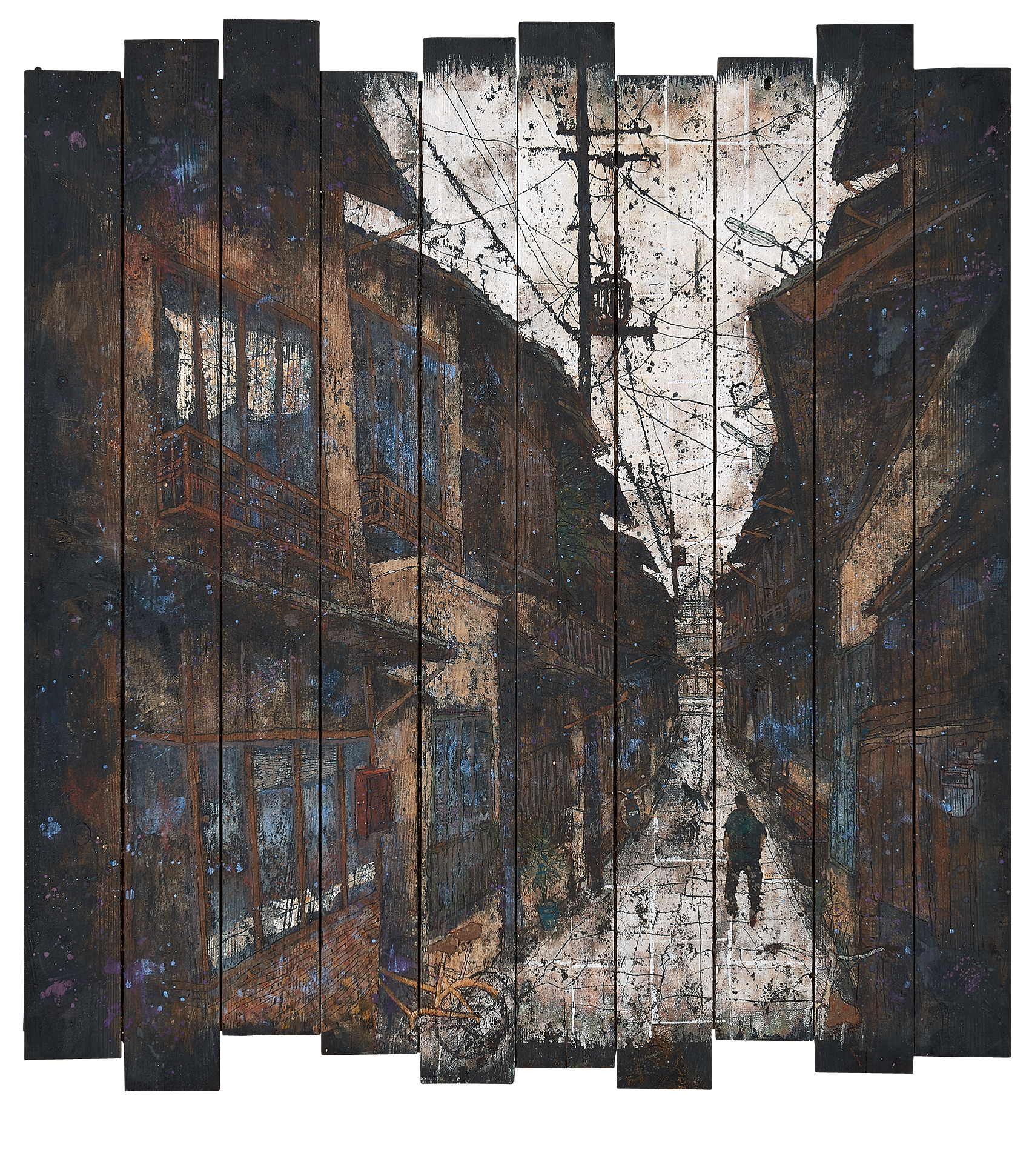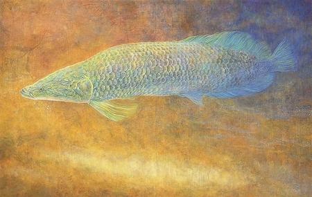 真夏の照り付ける太陽の下、蓮は泥のような地や沼で咲いているにもかかわらず、花は白からピンク色と可憐でとても美しい。開花は早朝、日の出頃で、実際に見ることはできなかった為、このように咲いたらきれいだろうなあと想像をふくらませて描いた。