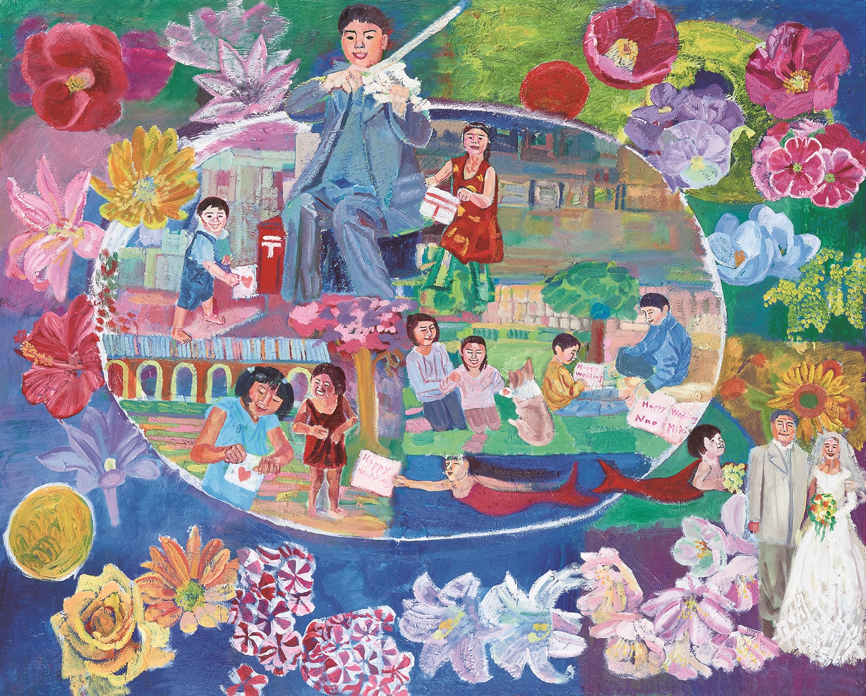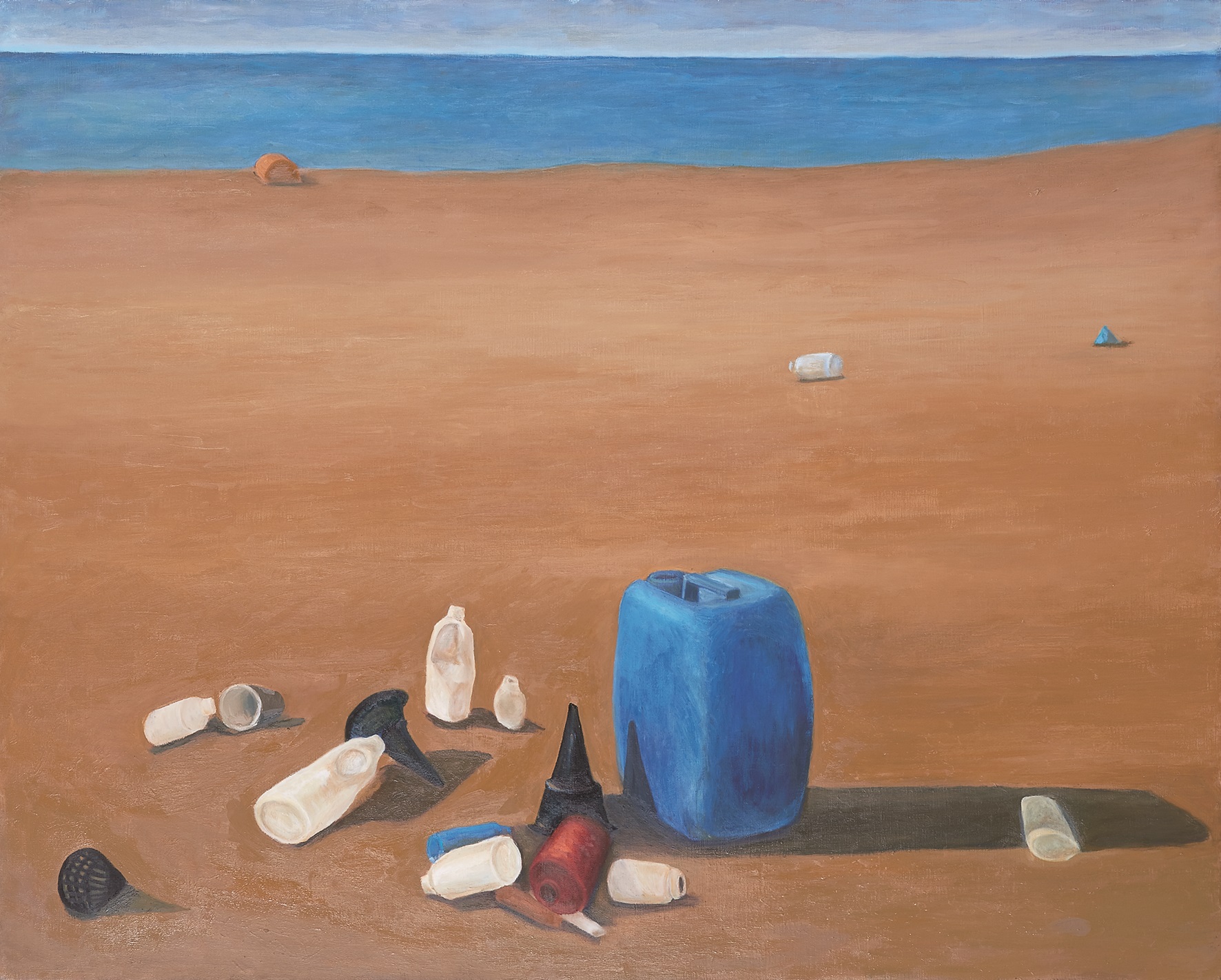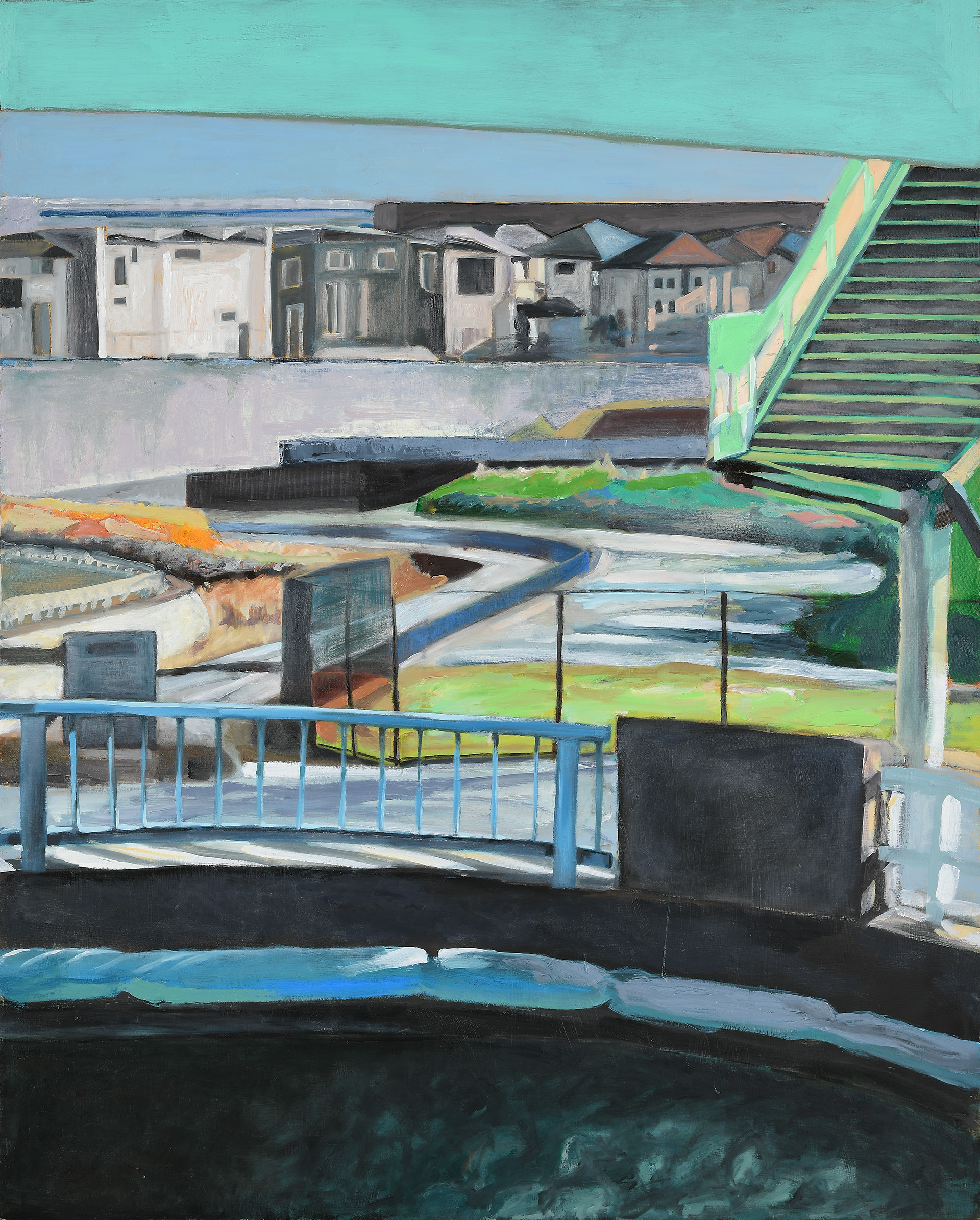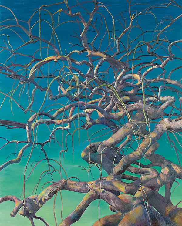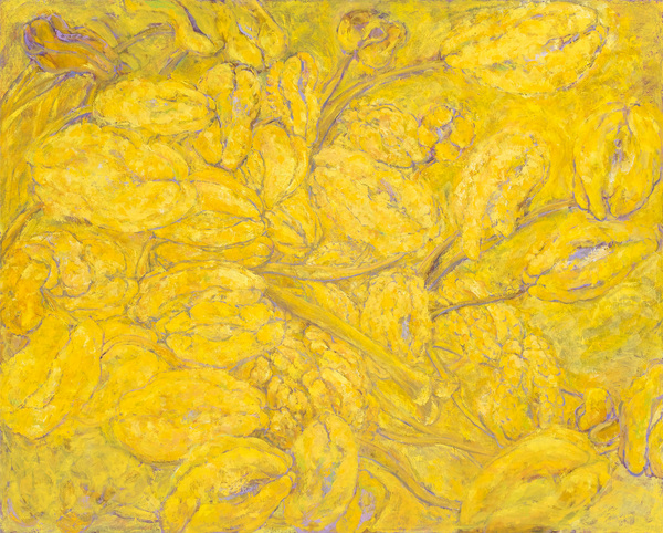 身近にころがっている小石、舗装されていない道の石畳をモチーフにし、何度も絵具を重ねてその輪郭線を意識しなくなるまで描くことで、物と余白が一体となって広がっていくような感じが得られるよう大きな気持で描いた。