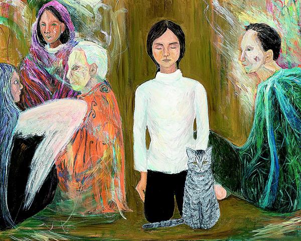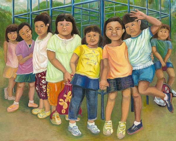地方都市のイベントに集う人たちを描きたいと思った。群像を描く場合、人々の配置を決めて、姿態、表情、服装など個人固有の特徴をとらえると同時に、その人たちが存在する空間や背景との関連性も配慮して全体の調和に留意しなければならない。何度も描いたり消したりして表現方法を模索した。