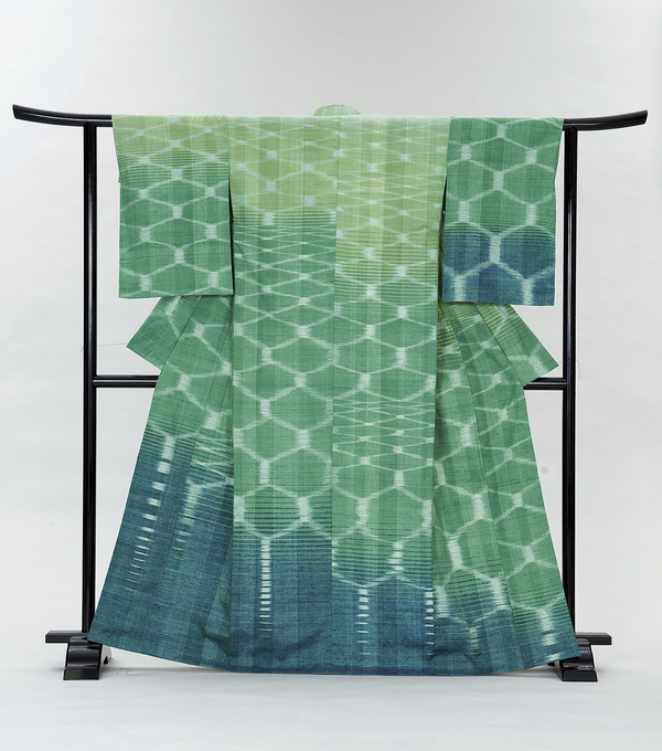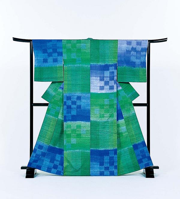 300×290cm 絹/植物染料・酸性染料、縫取織・絣