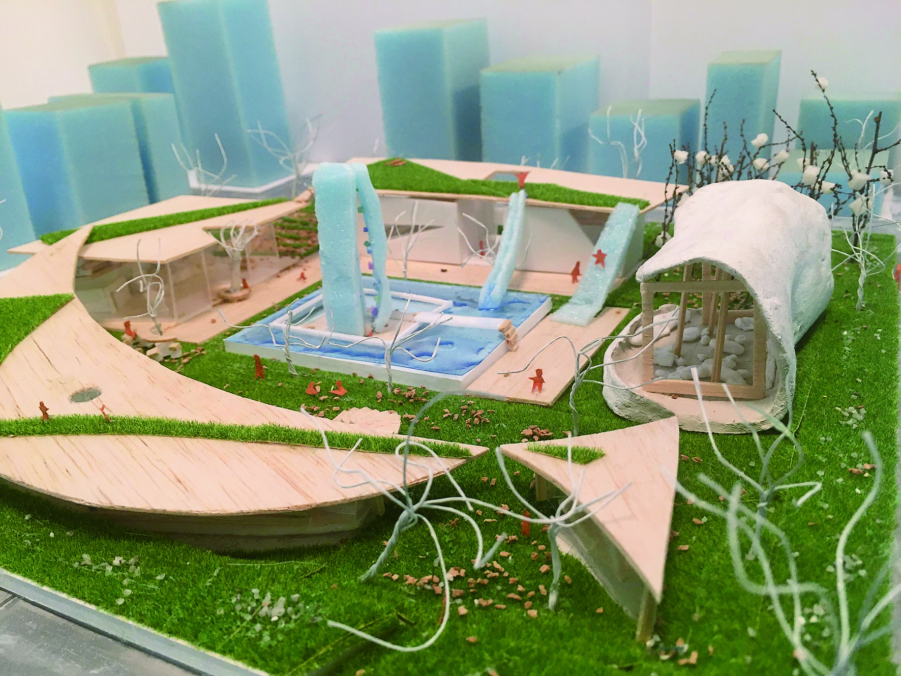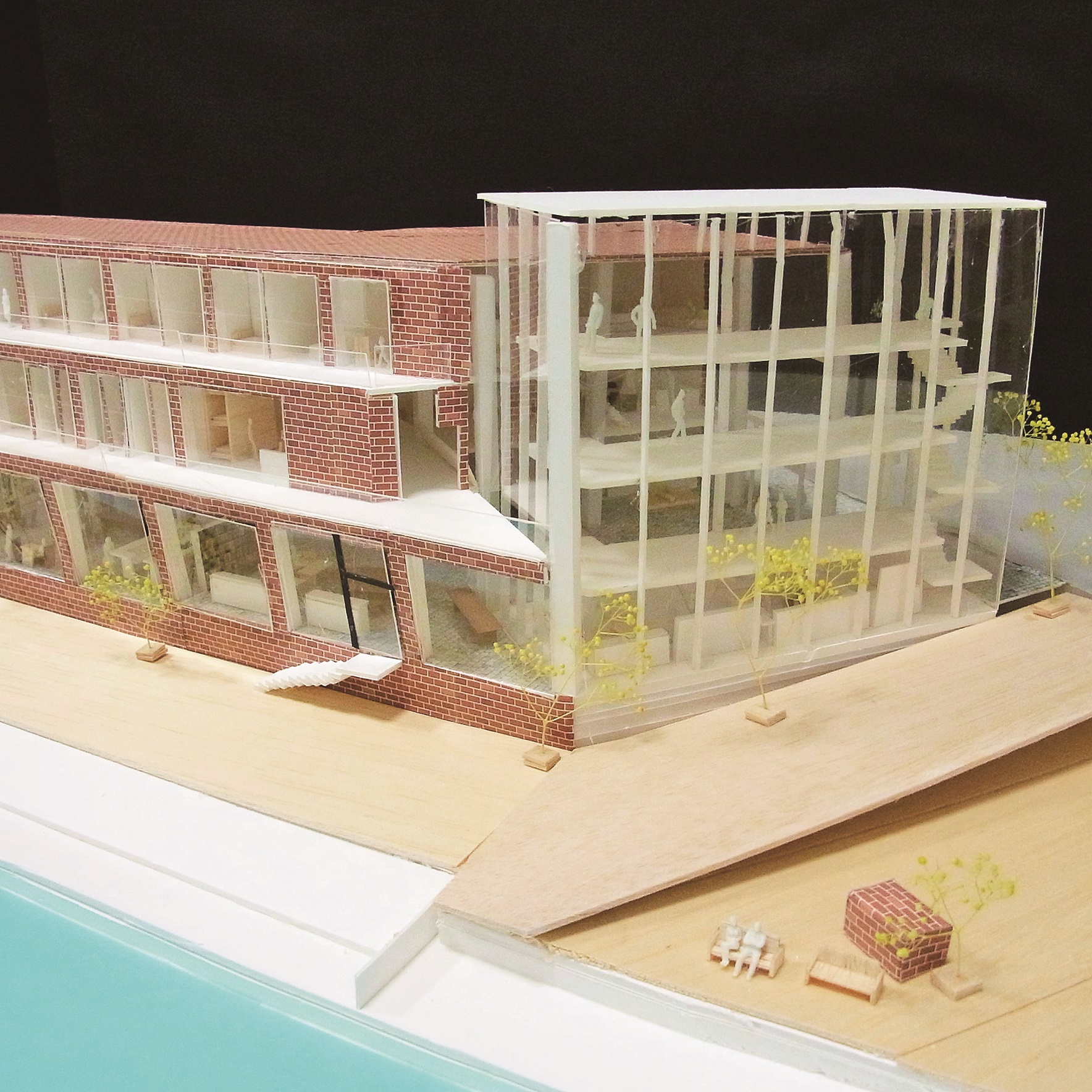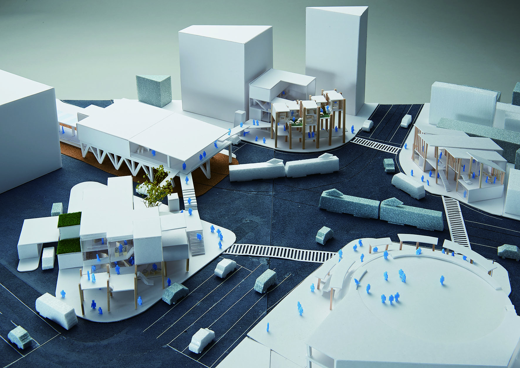 習志野市の「文教都市」としての未来につながる街づくり。新しい街づくりの主体である、旧市民、「奏の杜」の新しい入植者、行政、そして施設を使って文化活動をする団体、この四つの団体を有機的に結び付ける施設と広場。大ホール・小ホール・音楽教室・イベント広場。これらを配置する駅前の空間を「習志野ハーモニープラザ」と名付ける。