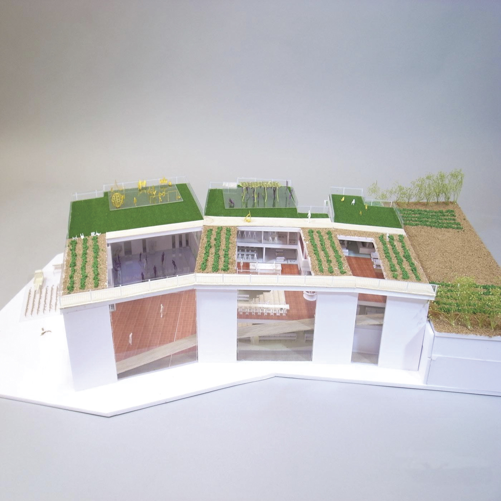 緑が多く、子育て世代が増加傾向の練馬区。子供を産み育てにくい社会と言える現代に対し、行政や機関は子育て支援制度に力を入れているが、相互間の連携がとれていないのが現状である。そこで、子育て家庭を総合的に支援できるよう、子育てに関わる全ての機能・機関を一元化することを目的とした、街に開かれた子育て支援施設を提案する。