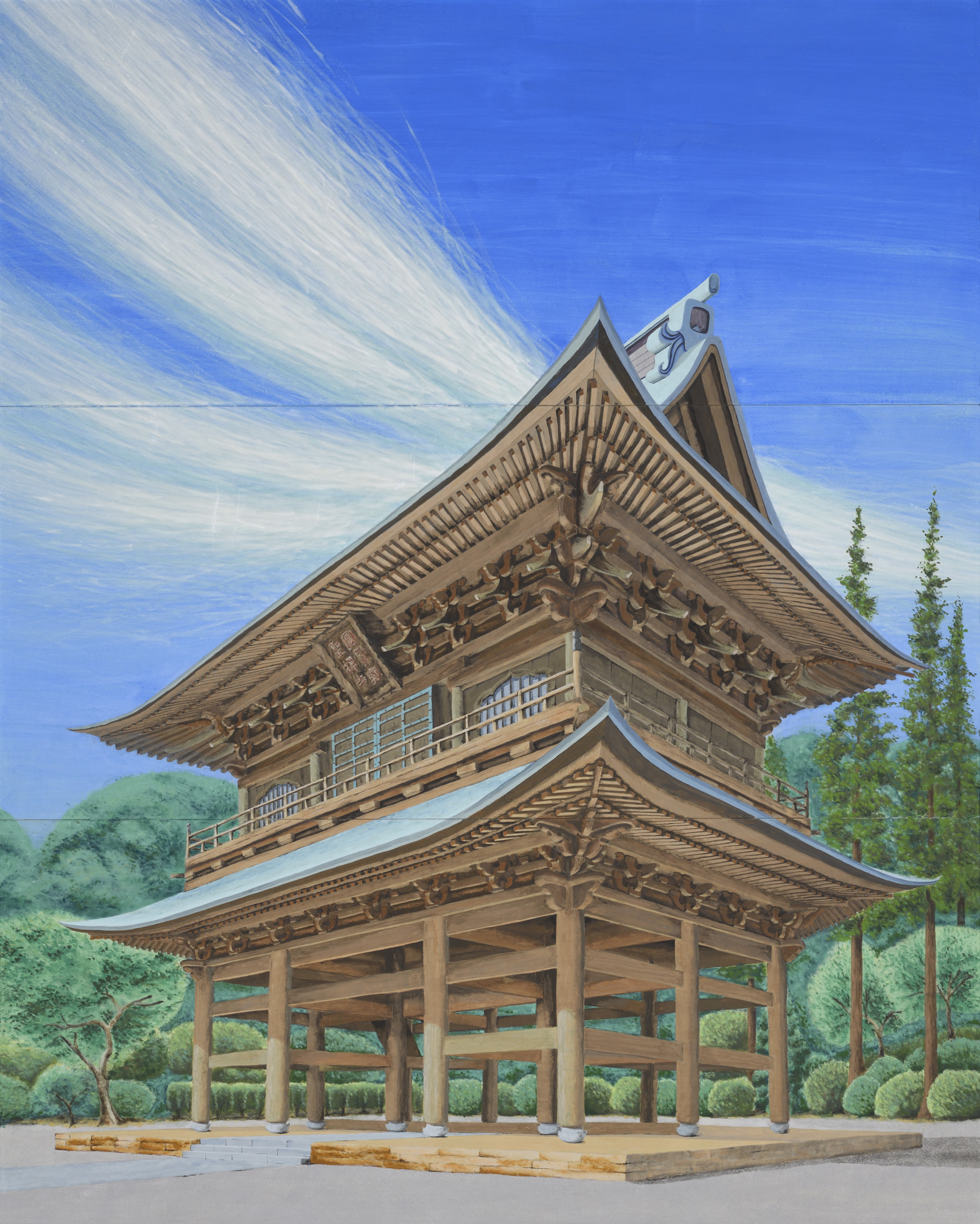 112.1×162.1cm 紙本、岩絵具・水干絵具・墨 天王寺動物園で暮らすホッキョクグマの女の子「イッちゃん」がモデルです。夢を見ているようなお顔と柔らかい雰囲気を大切に描きました。動物さんは動くので写生が大変ですが、描けたらものすごく嬉しいですし、一生懸命生きている姿に感動し力をもらいます。この力が伝わり、見てくださった方の夢や希望に少しでも繋がりましたら幸いです。