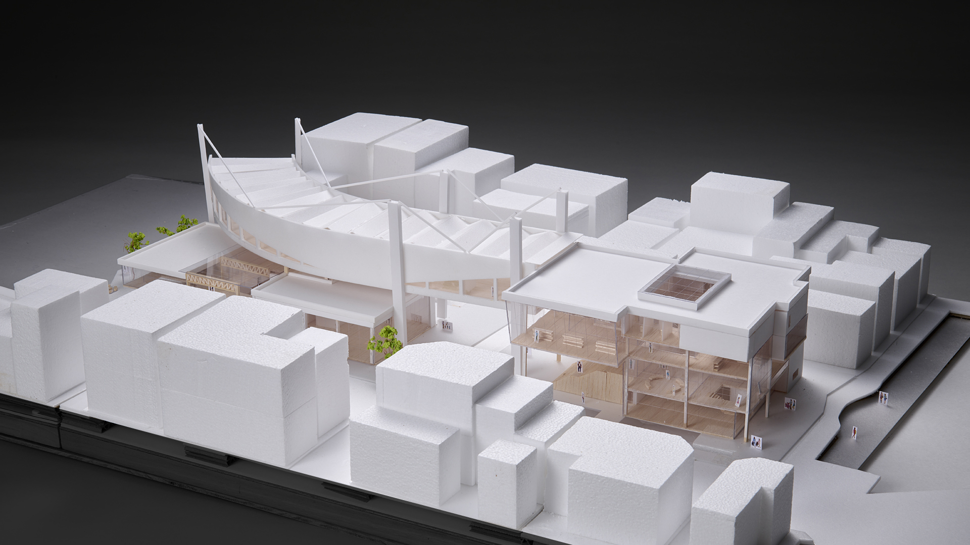 専門分野が異なる大学生達が共同生活やものづくりを通じて多角的に考える能力や協調性を養う場所を提案します。また、企業との連携により産学一丸となって取り組む仕組みや地域住民とのつながる仕組みを建築化しました。