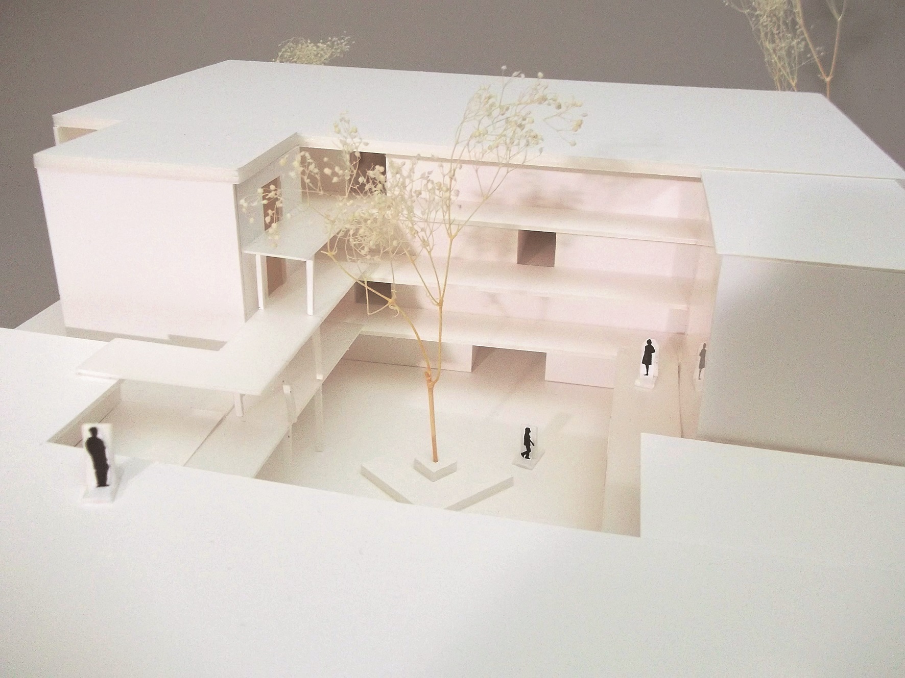 かつて木材の町として栄えた新木場で、木工芸の普及と育成を目的とした職人育成拠点を設計する。原木から製材された角材は様々なモノになる可能性を秘めている。角材を積み重ねたファサードの建物は、学びの機能だけでなく、町で働く人、町に訪れる人、様々な可能性を受け入れ積み重ね、新木場という町の活性と魅力の創出につなげるシンボル的存在となる。