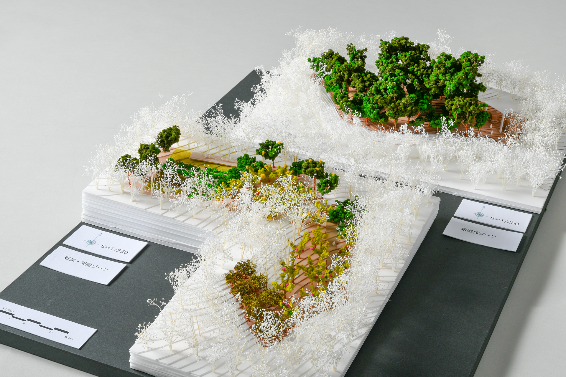 構想 Case1:23,000㎡ Case2:4,800㎡ 私達が日常を過ごす場所には美しい風景があるのか、果たしてその「美しい」とは何なのか考えました。未来を担う子ども達には、その美しい風景の中で大きくなってほしい。その中で、美に対する感受性は育まれると思います。まずは美しい1本の樹から…。プロの手による植栽管理をより手ごろで身近にするための環境づくりを提案します。