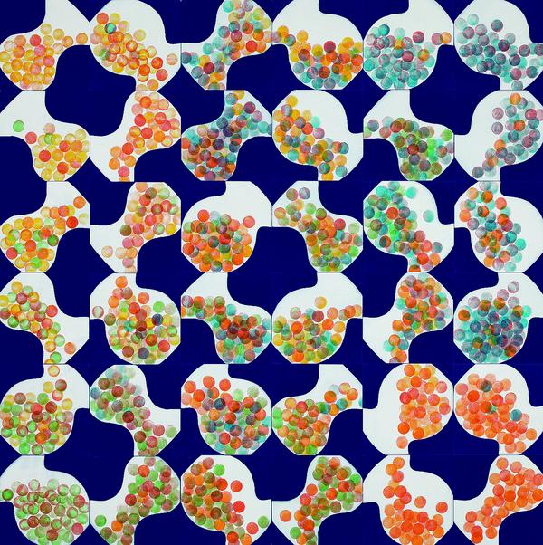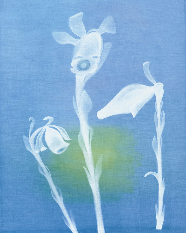 色、そして花びらの隙間からのぞく空を水色で表し、その6色の糸を使い、3