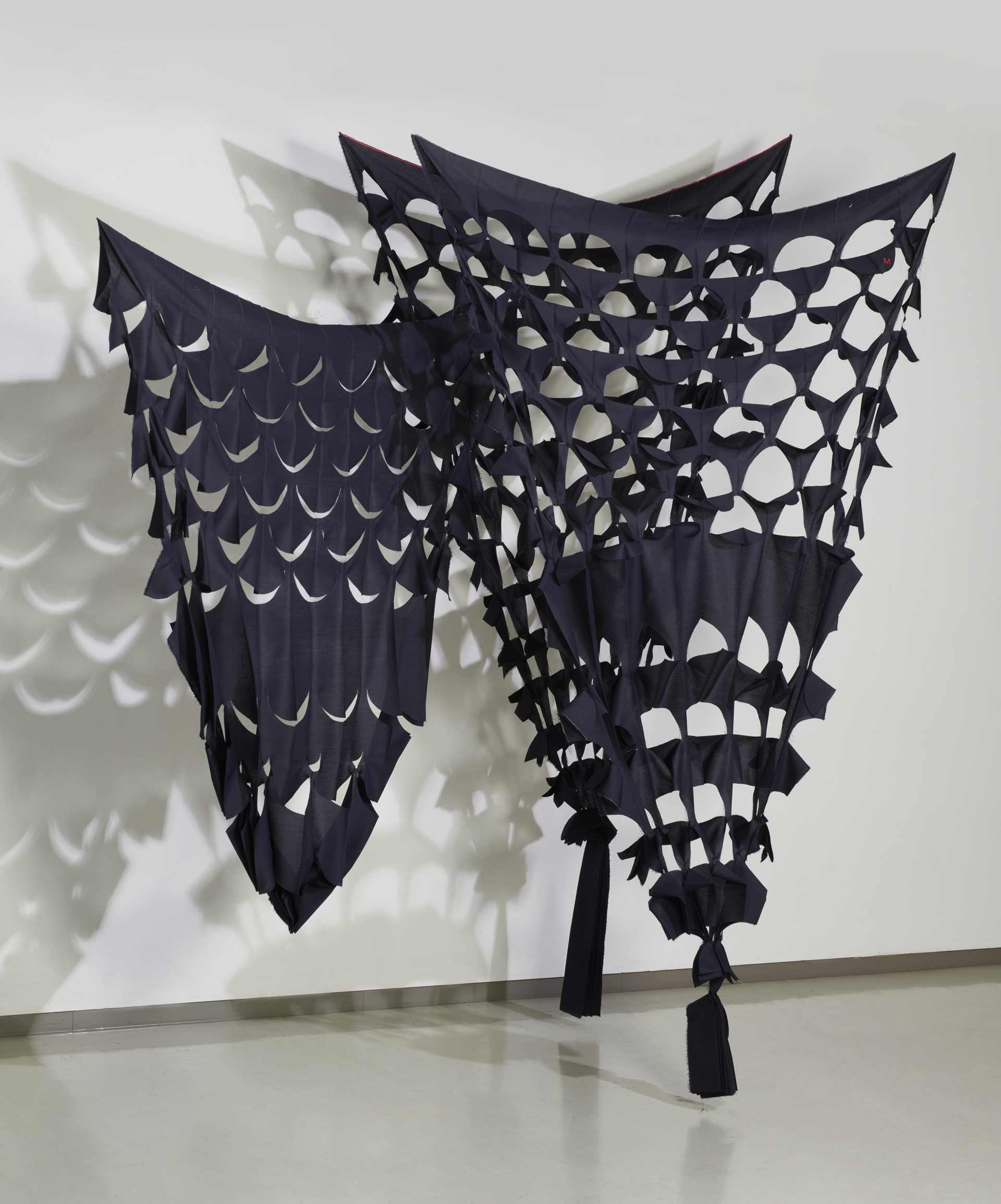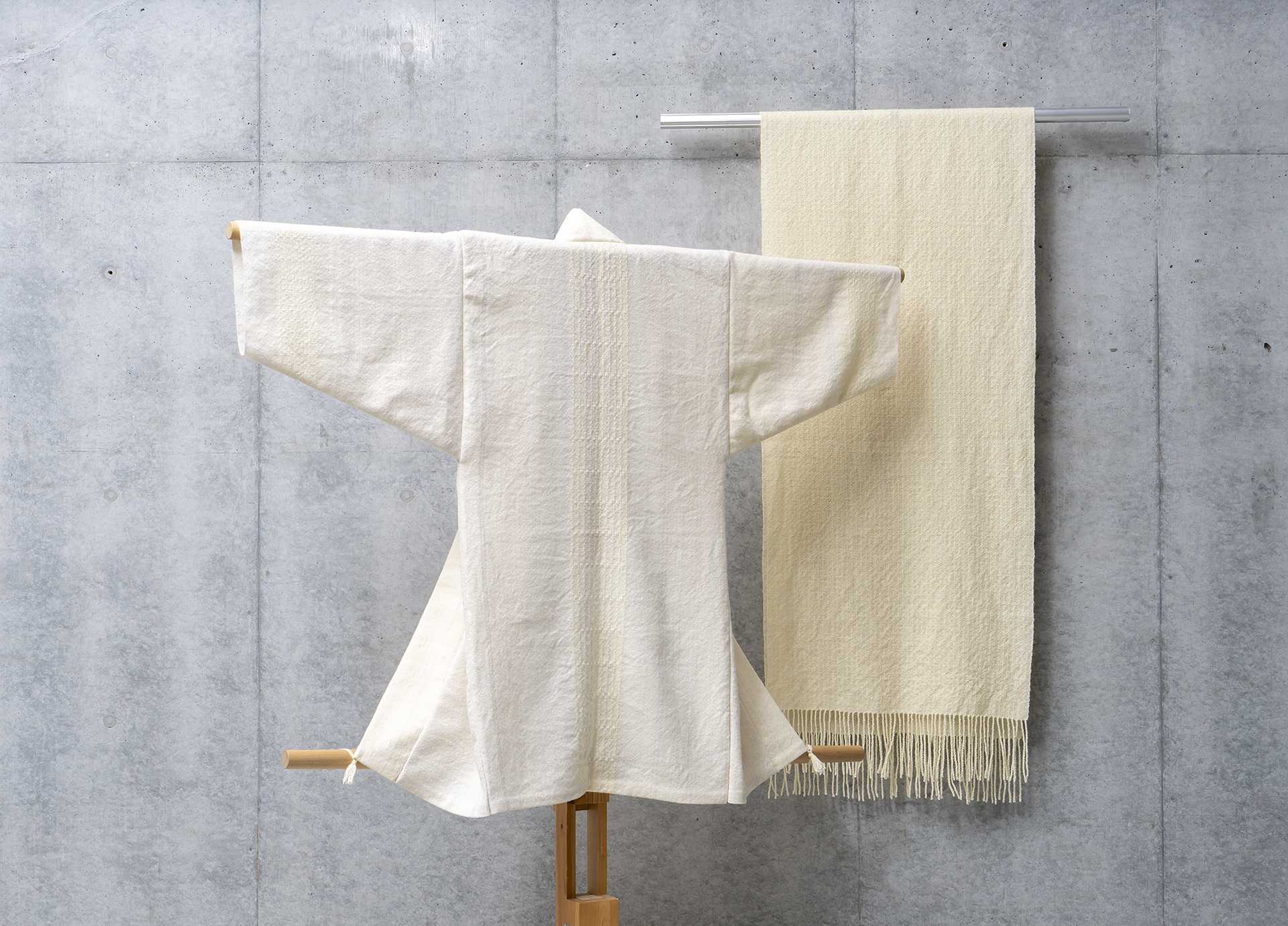 を身近な自然素材であるトウモロコシの皮で糸を作り、編むことで形にした。