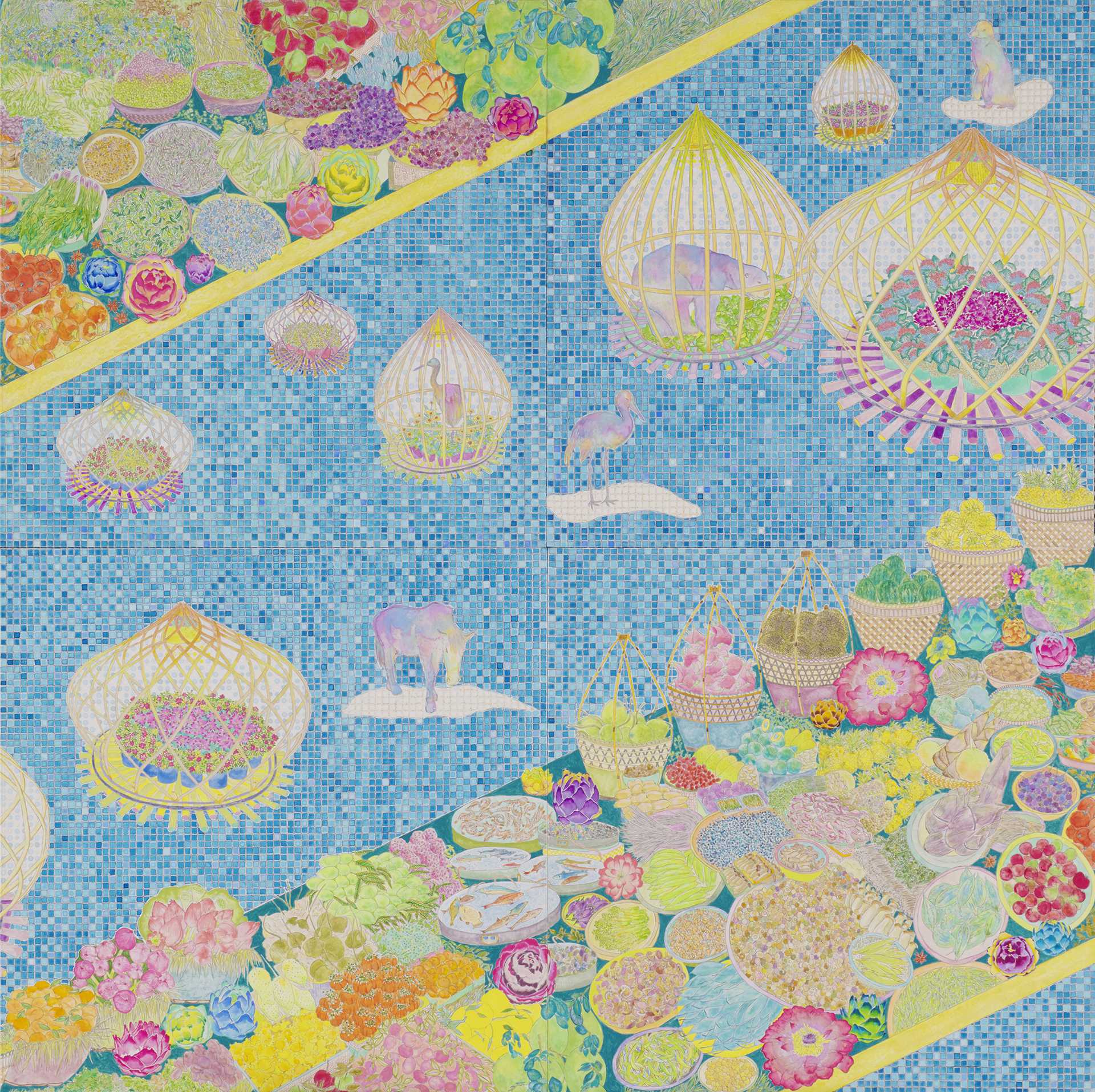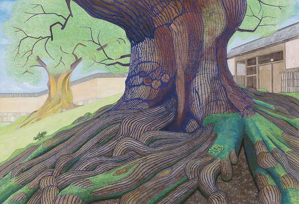 万寿元年(1024)に関白藤原頼道の邸高陽院で催された駒競の後の饗宴のありさまを描いたものである。儀式の壮麗さや建物の豪奢さが鮮やかであり、公卿や殿上人をはじめ、警護の役人、庶民たちそれぞれも味のある個性を与えられている。これらの描写の再現は想像以上に困難であったが、同時に貴重で幸福な体験であったと思っている。