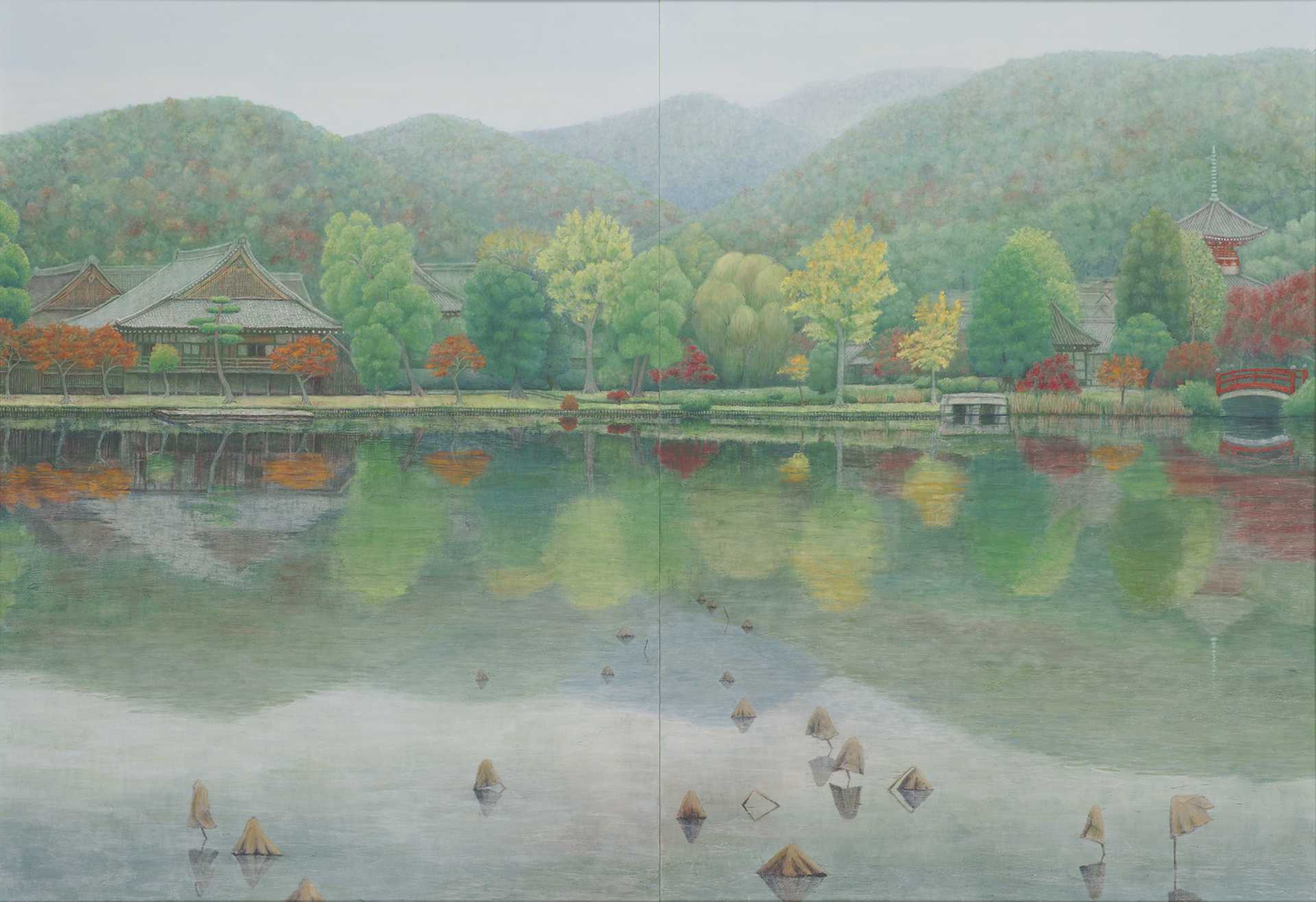紙本/岩絵具・水干絵具・アルミ箔・銅箔・黒箔