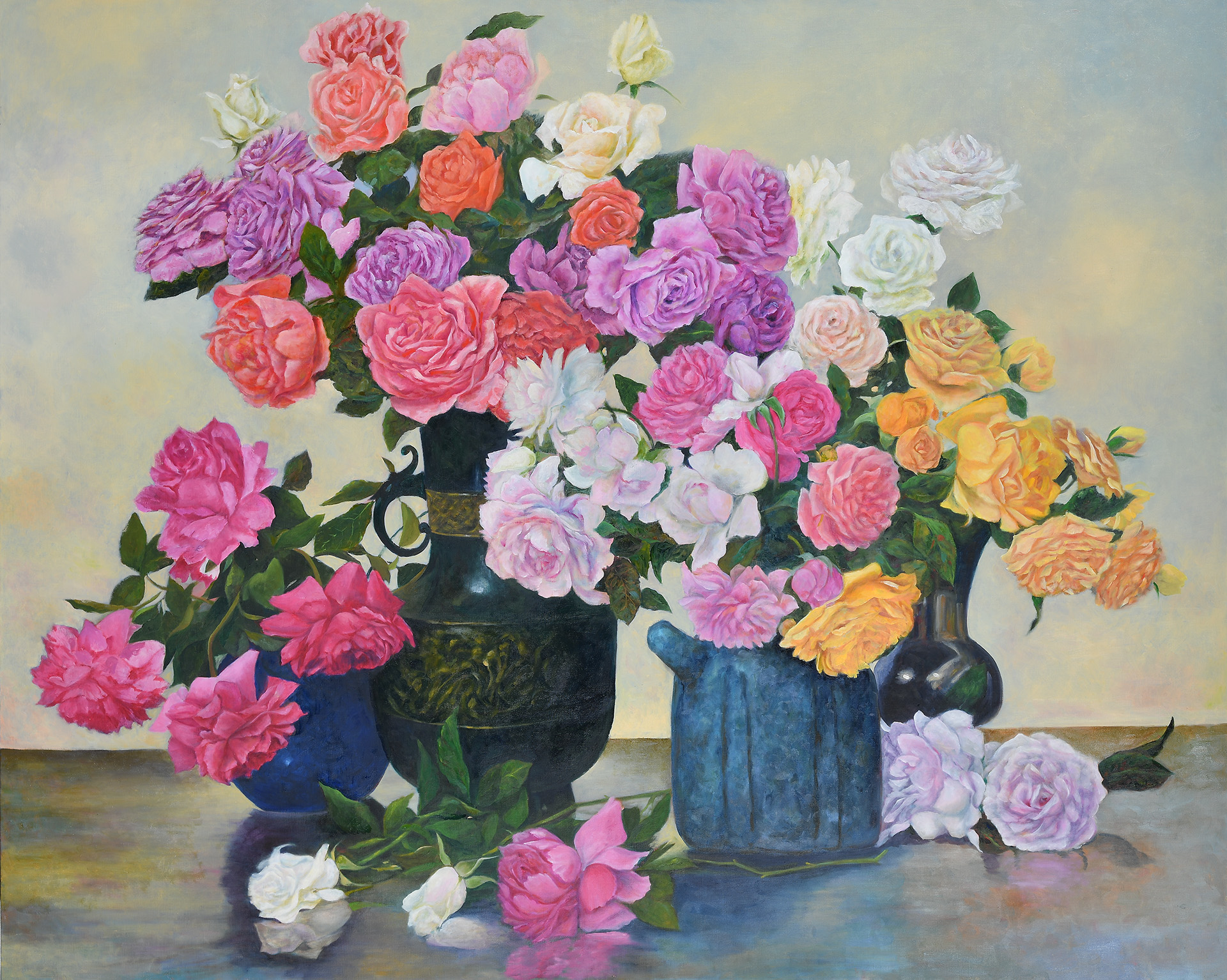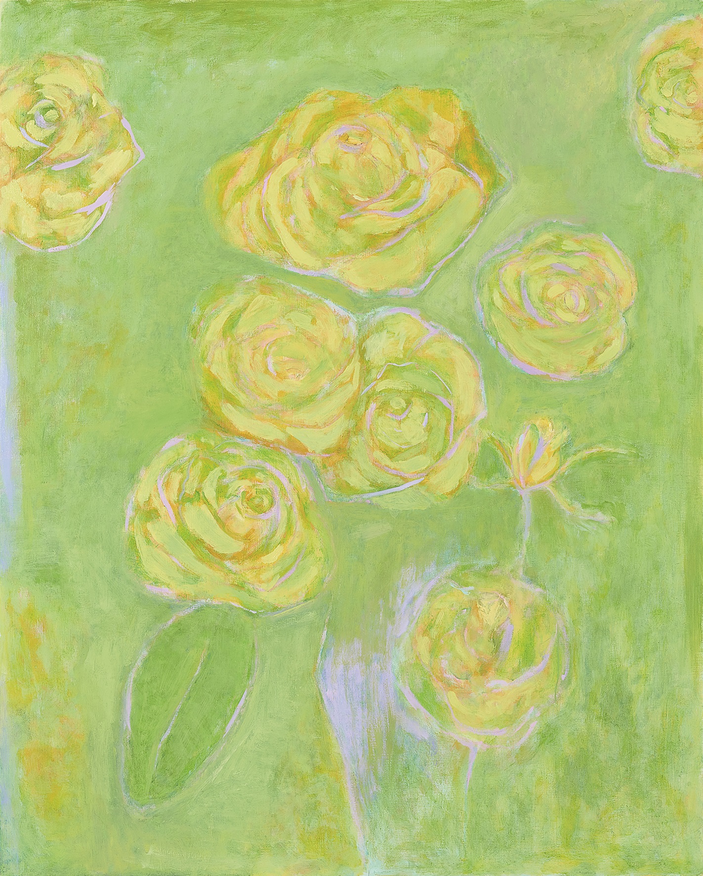 信州は山々に囲まれ、春夏秋冬、四季折々に自然が織りなす美しい景色が多く自然が豊かである。目の前いっぱいに広がる山々、深呼吸したくなる森の緑、現場で清々しい風を感じながら、小さなキャンバスに里山の春を再現した。自然と一体になる感覚は気持ち良く、これからも風景の中に身を置き描き続けたいと思う。