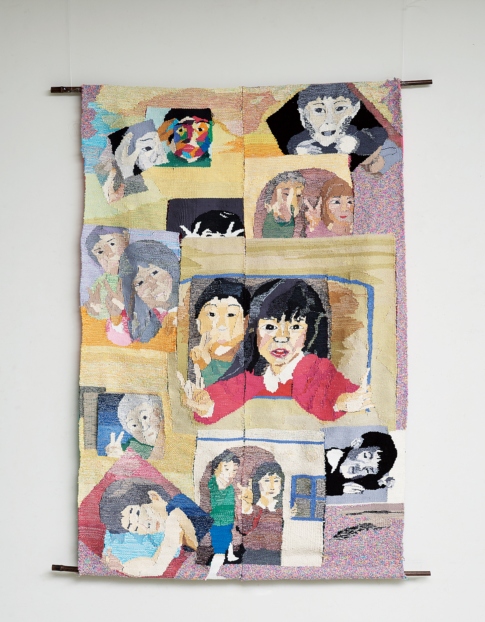 モデルは、中国産の落花生である。仕事帰りにスーパーで出会った。形と模様に特徴があり、まるで腰を曲げた人の様に見えたため、写真に記録した。写真を白黒反転コピーして、拡大。それをトレースし、落花生一莢づつの型を作成した。直感で型を布地に並べて、直感で色を差した。改めて落花生のビジュアルの魅力について考えた1年であった。