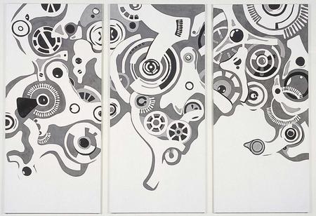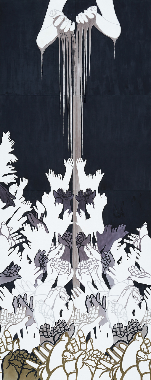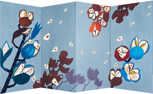 日本語の文字自体の美しさと、文字でありながら文字が集合体として表れたときの造形美を感じてもらえればと思います。園生は学生が集う楽しい学舎の風景です。